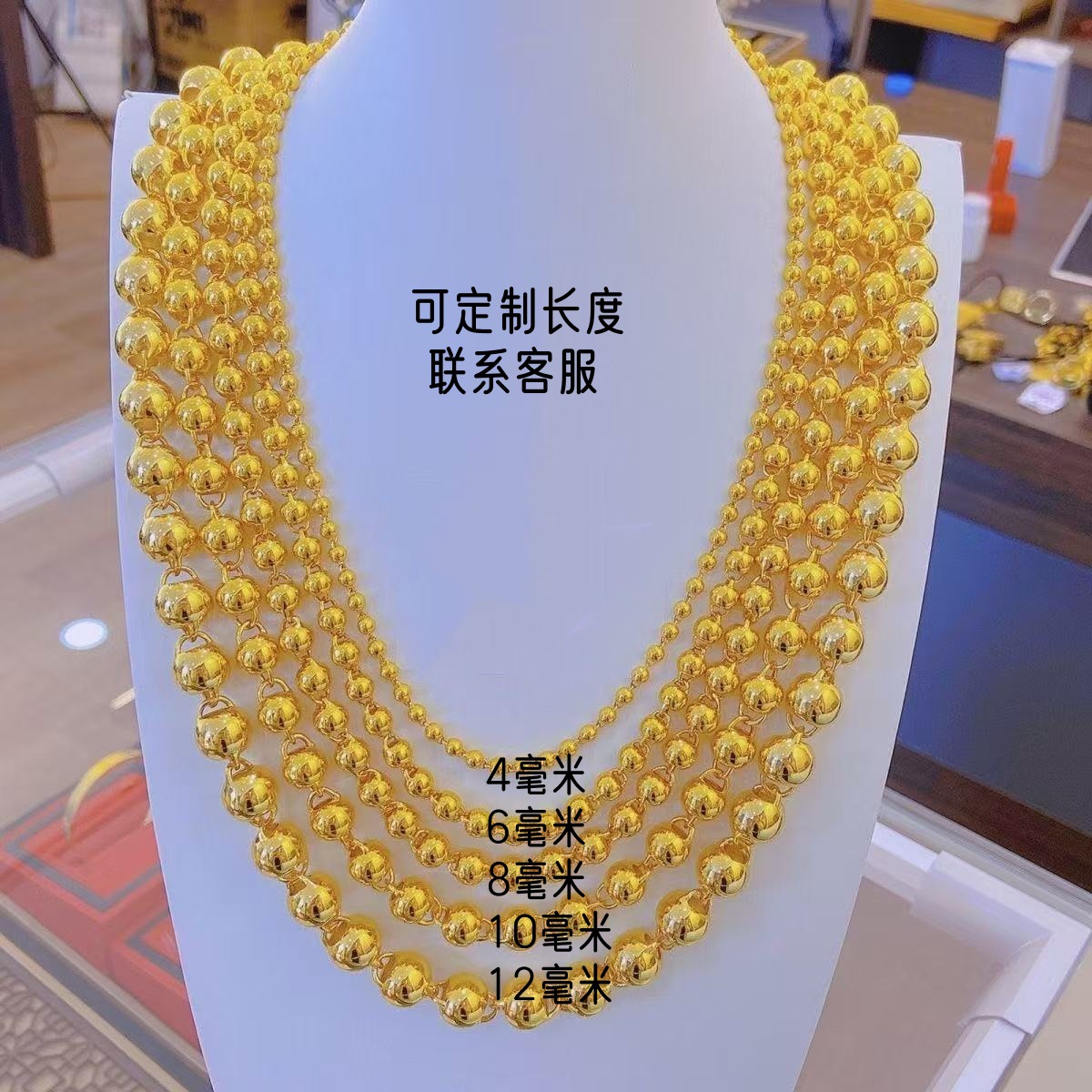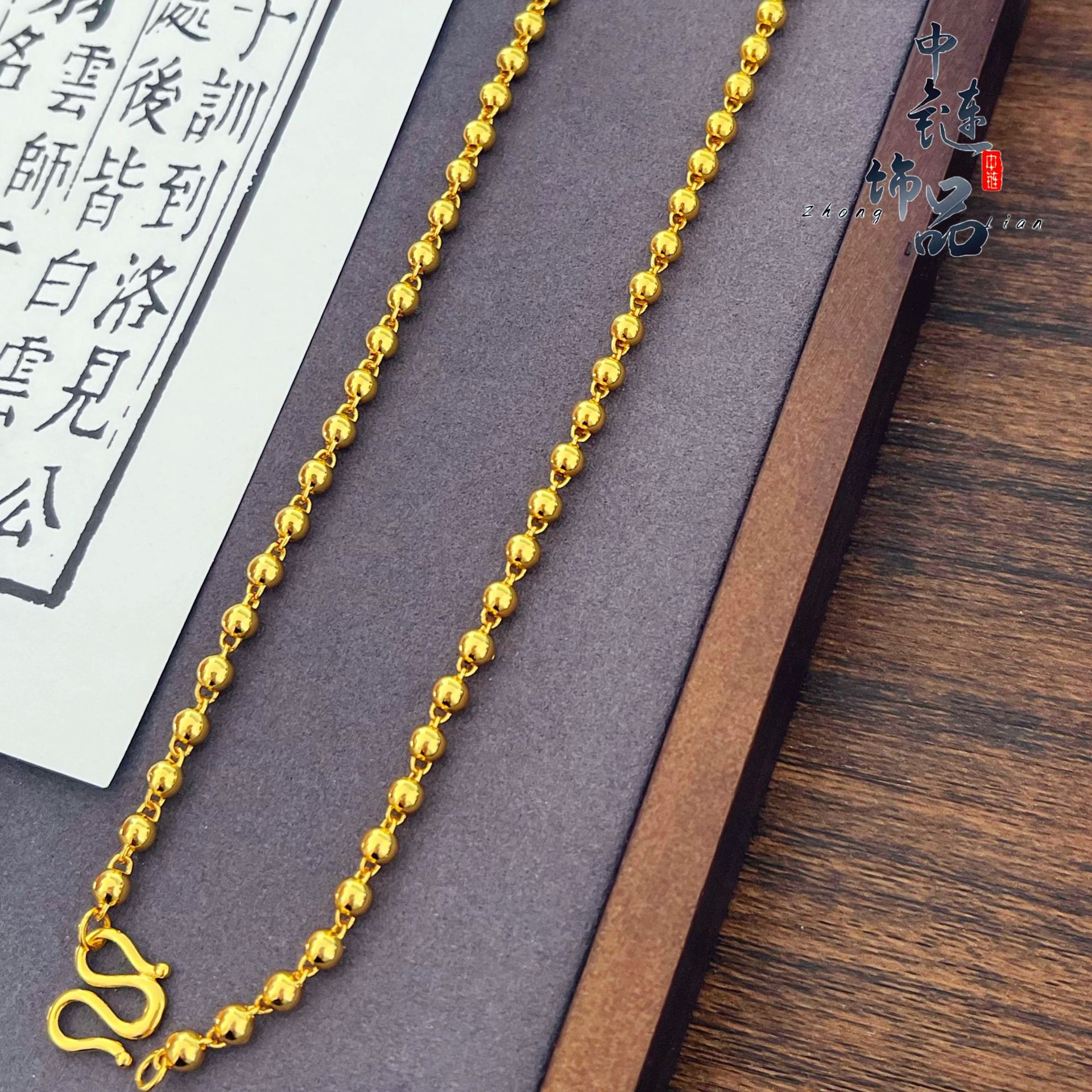 ベトナムの砂金の玉のネックレスの男性の黄銅の金メッキの光沢のある顔の社長のチェーンの覇気の男性の仏の玉のチェーンの金の店は同じです。