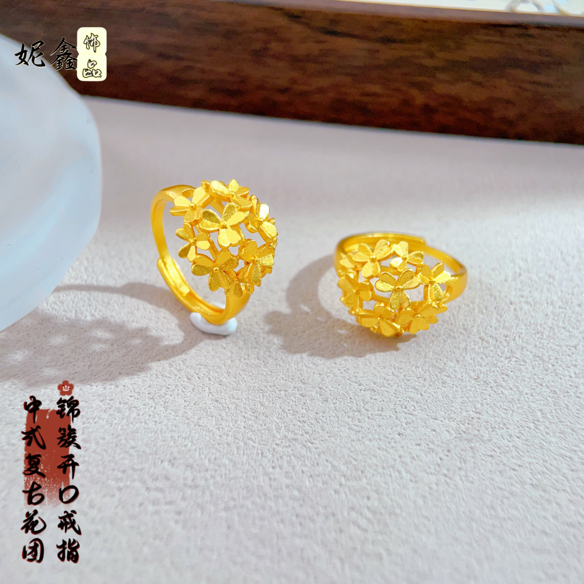 Guochao サンドゴールドの絶妙で多用途なフラワーリング、新しい中国風のファッショナブルな気質、多用途でハイエンドの甘いリング