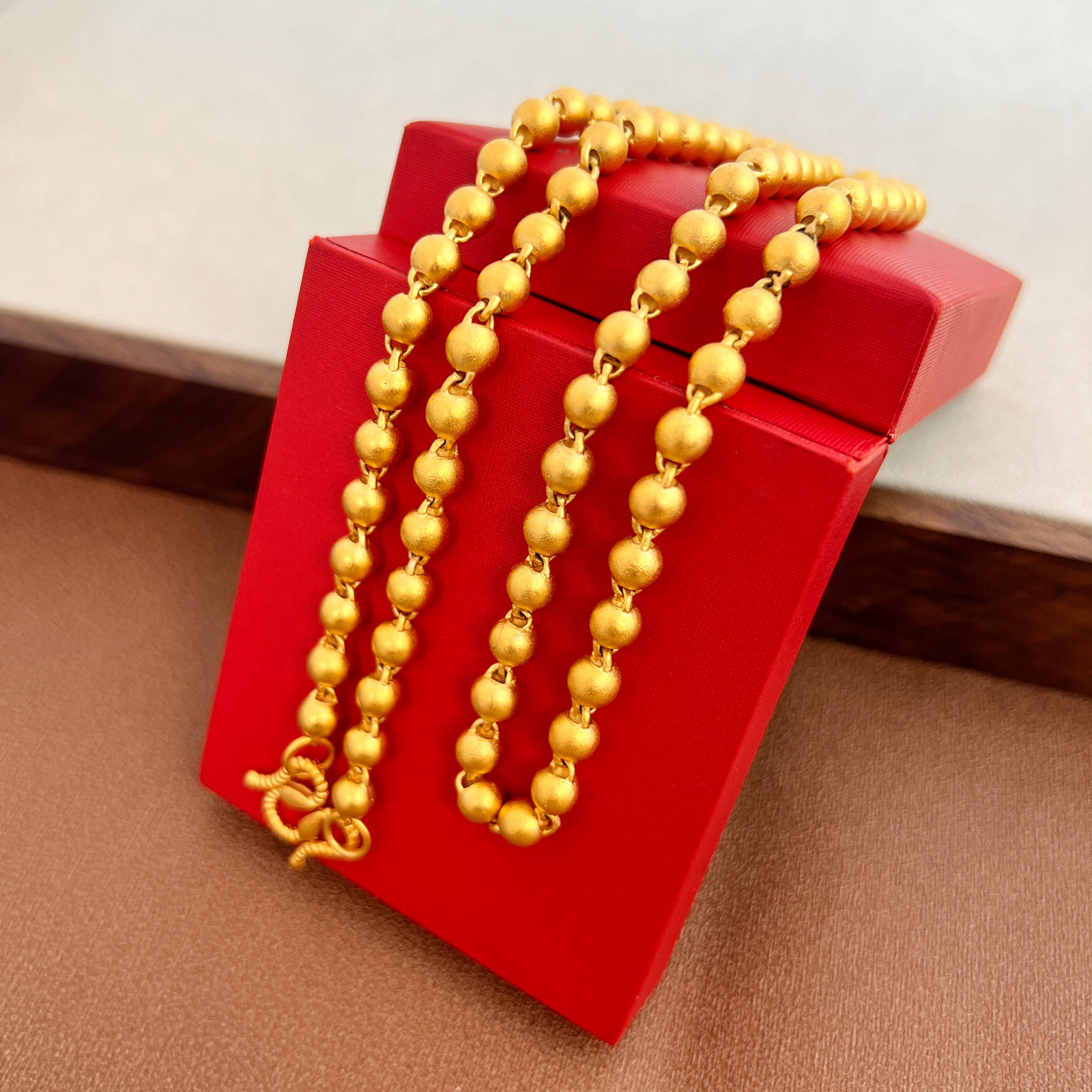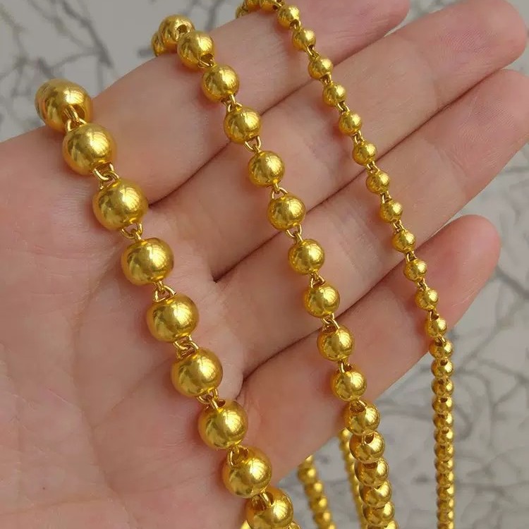 高色保持ベトナムサンドゴールドビーズネックレス M バックル男性と女性のための高色保持古代つや消しソリッドボールチェーン仏ビーズチェーン