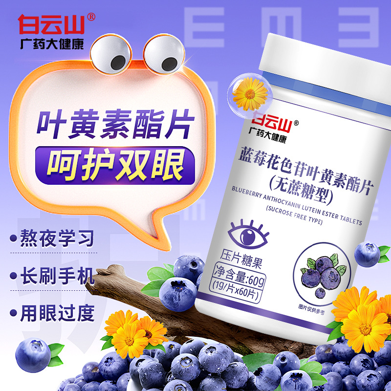 白云山蓝莓花色苷叶黄素脂片无糖型60片压片糖果现货一件代发批发