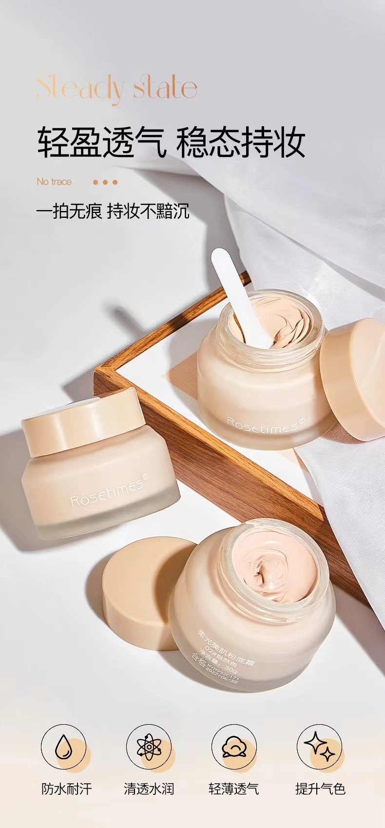 Rosetimes柔光美肌ファンデーション30g潤い服帖クリーム肌ファンデーションファンデーションクリーム代発