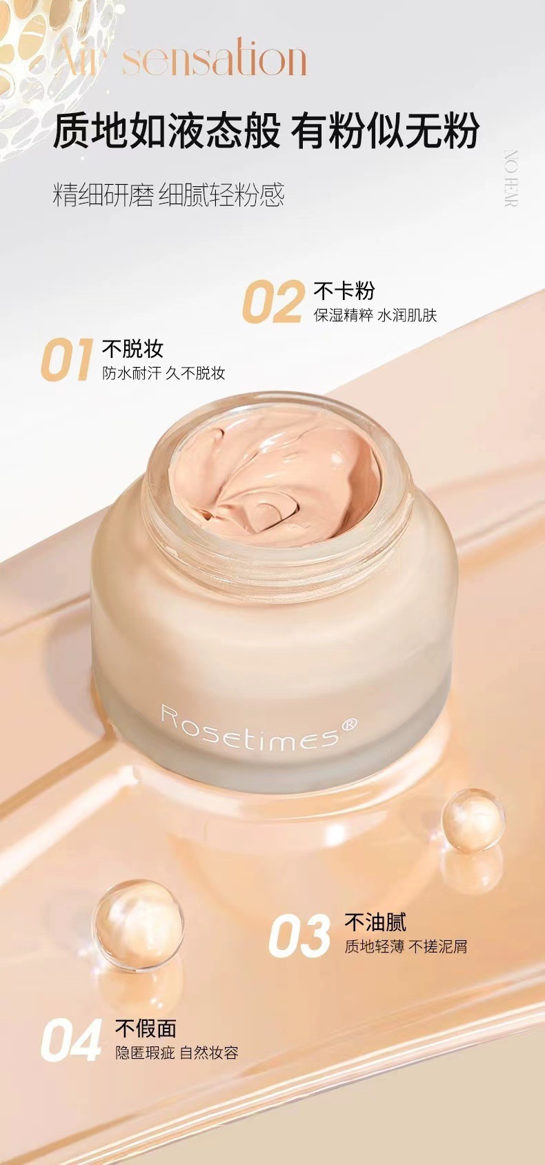 Rosetimes臻颜柔光粉底霜防水防汗不脱妆遮瑕保湿学生平价粉底液