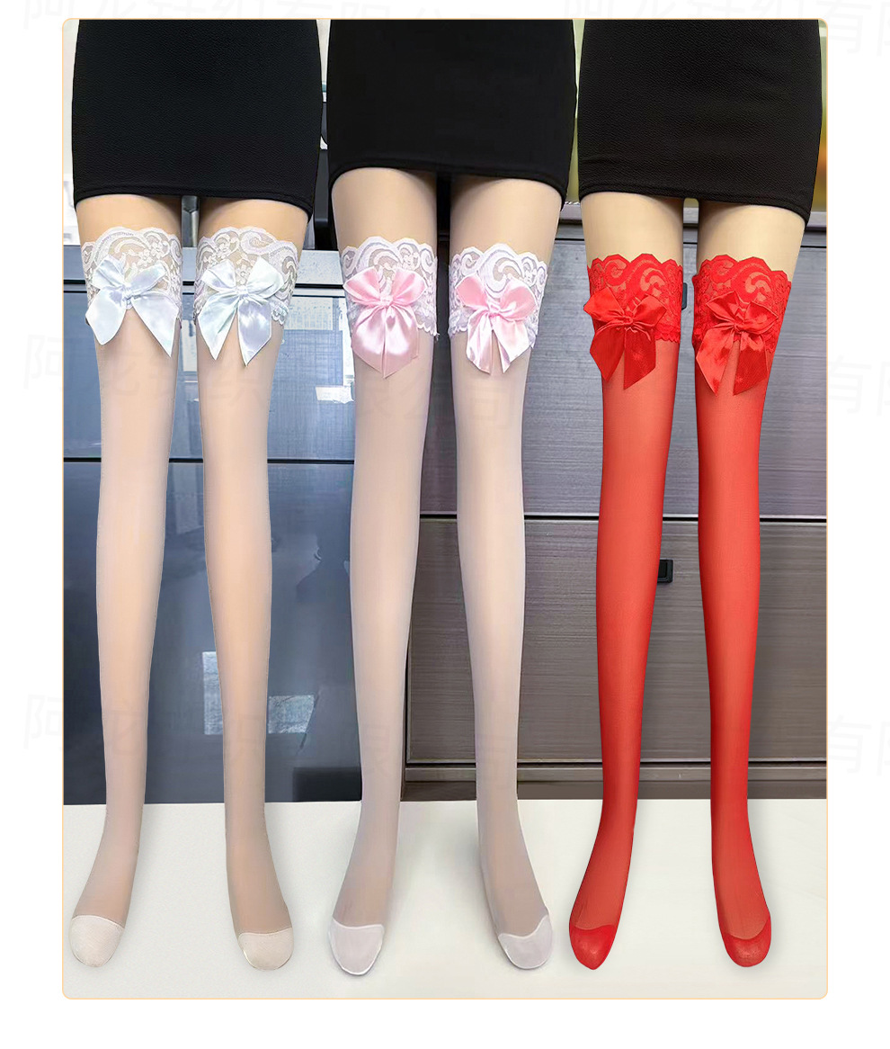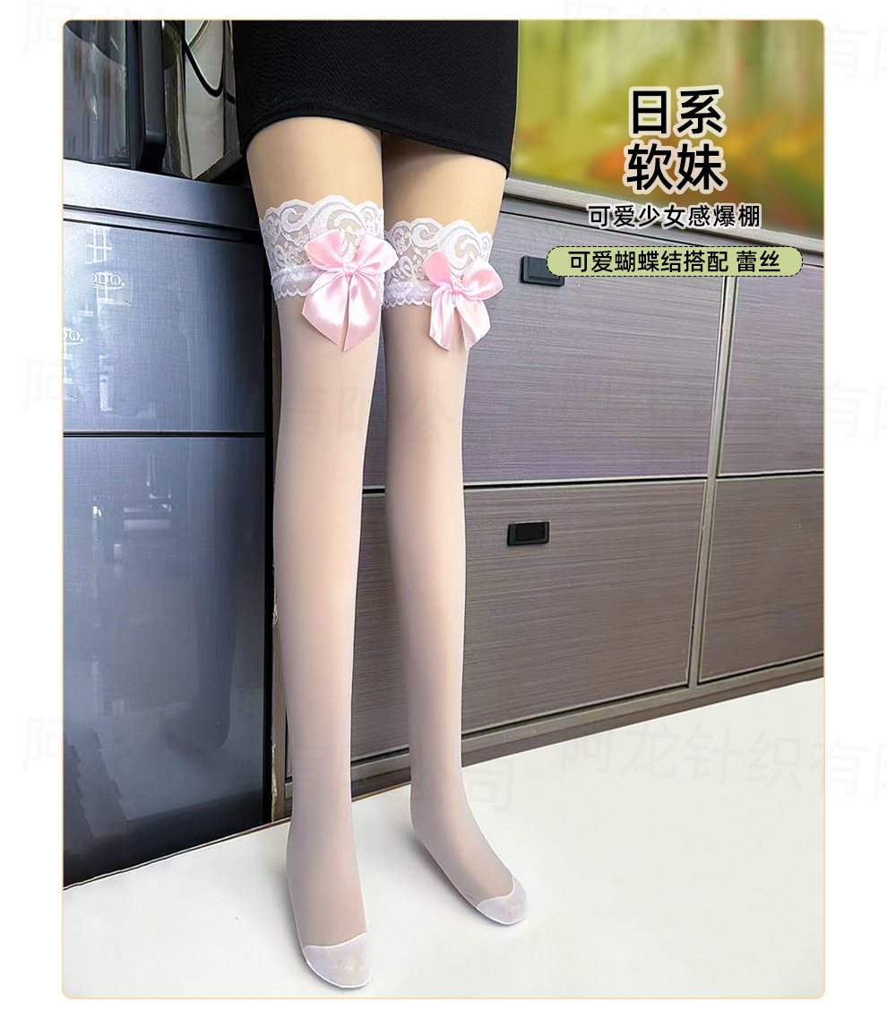 蝶結びロングニーソックスレディースレースセクシーサイソックスネットセレブセクシーピュアディザイアJK春夏薄手スタイル