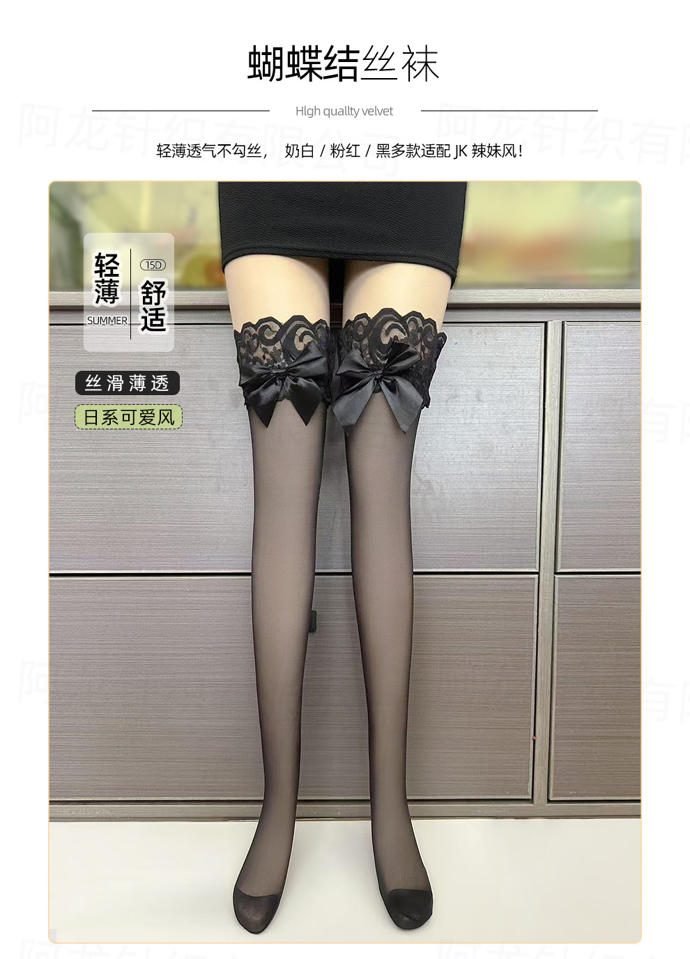 源头丝袜女秋薄款防勾耐穿过膝长筒袜爱心蝴蝶结黑丝大腿袜子批发