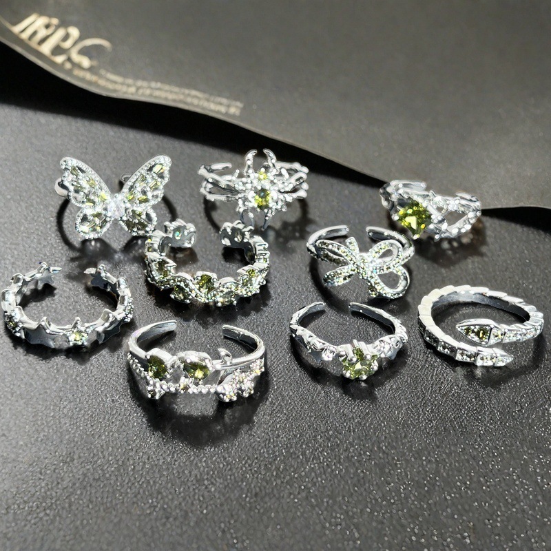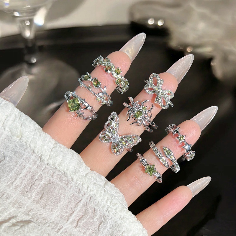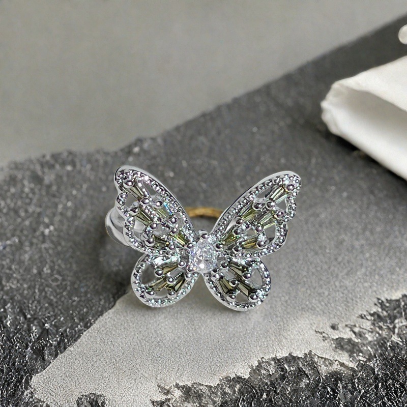ブルーシリーズ新商品蝶ジルコン開口指輪フランス軽贅沢個性ins冷淡風滴油指輪女