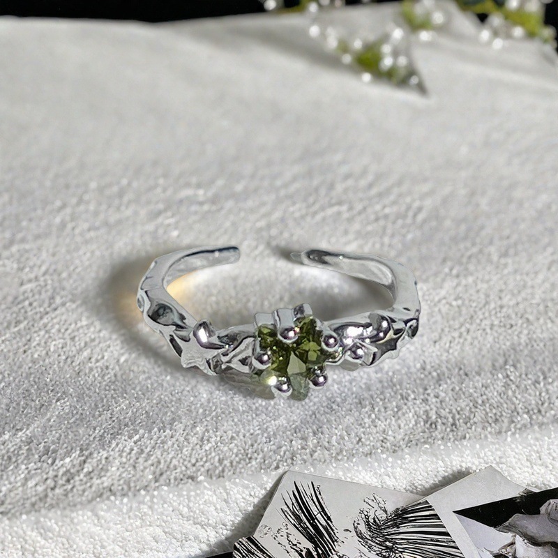 太陽の花の緑のダイヤモンドのジルコンのカラーの宝の開口の指輪の中古のフランス式の復古の軽豪華な高級感の精巧で精巧な超フラッシュの装飾