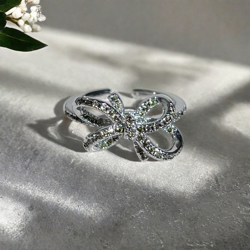 [レースダイヤモンドシャドウ] シンプルで軽い高級感のあるレースリボンオープンリング、絶妙な重ね付け可能な万能ニッチリング