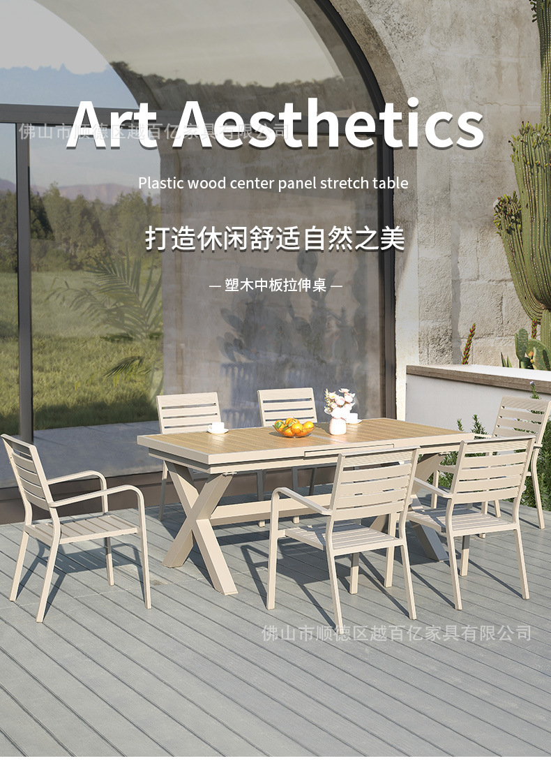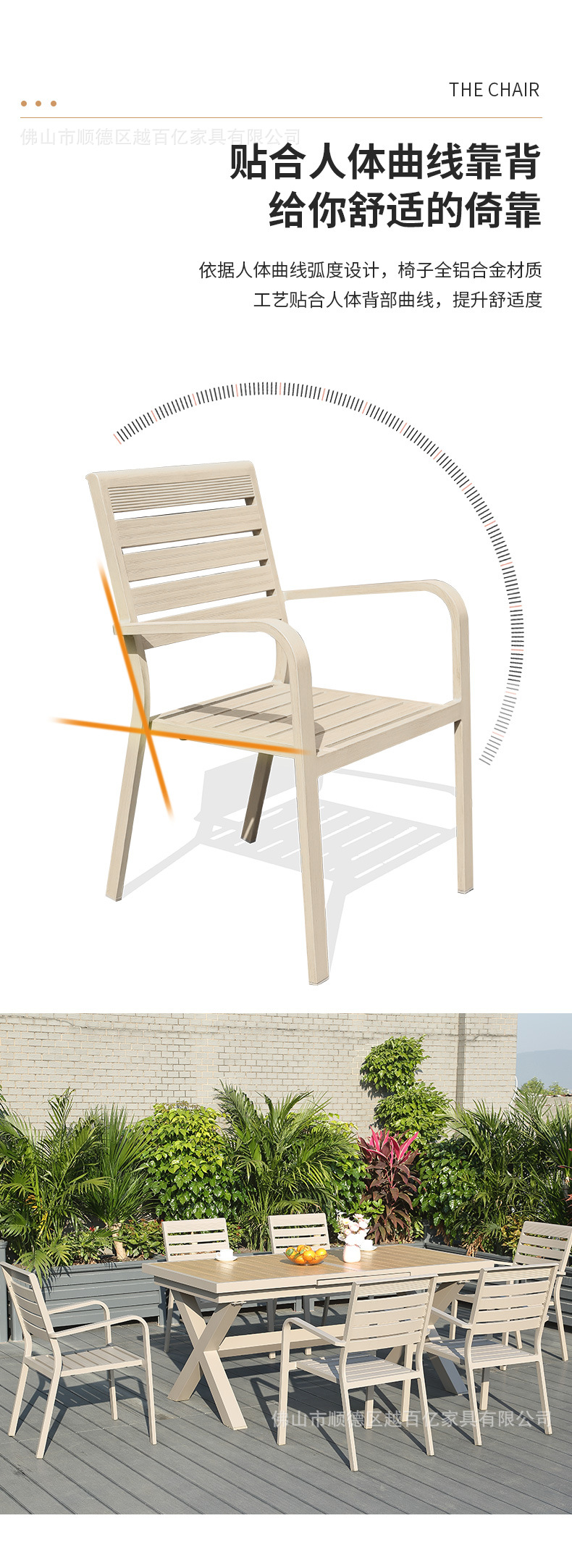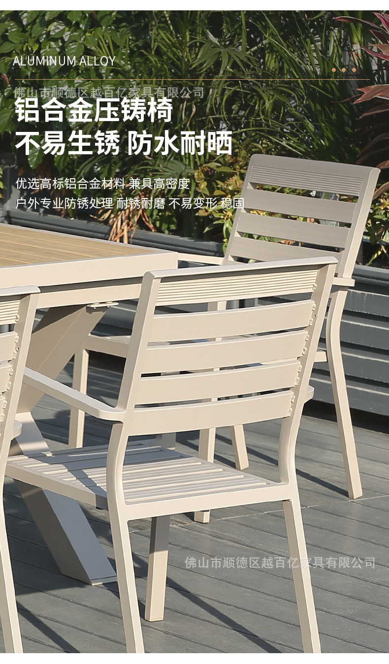 屋外防水オールアルミニウム大型ロングテーブル中庭ヴィラガーデン伸縮式ダイニングテーブルと椅子の組み合わせプラスチックウッドオープンエアヤード屋外