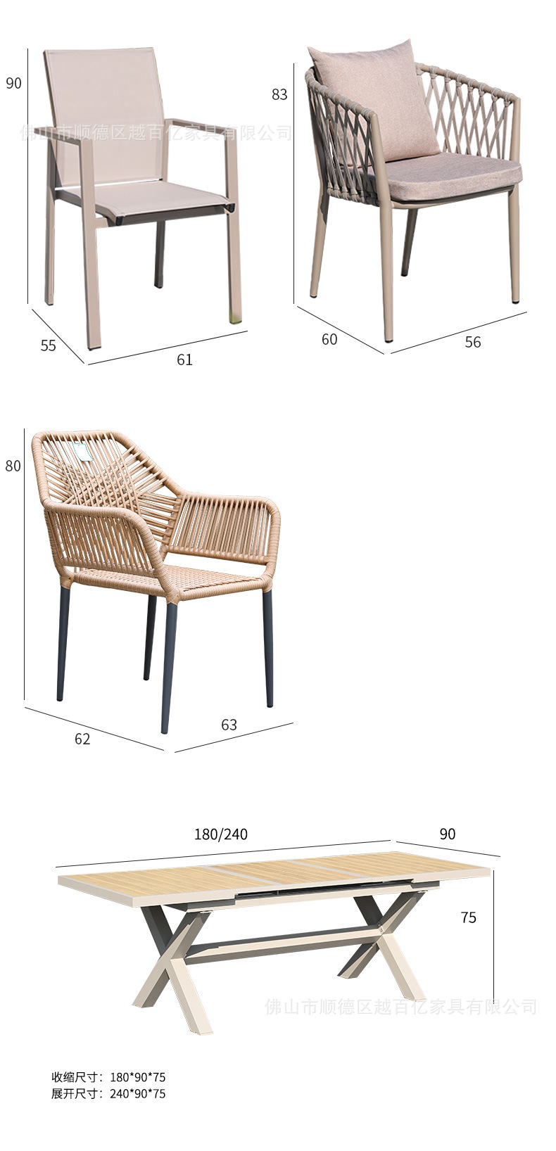 屋外庭園テーブル椅子伸縮台別荘花園藤椅子露天アルミニウム合金屋外レジャープラスチック木製食卓露店