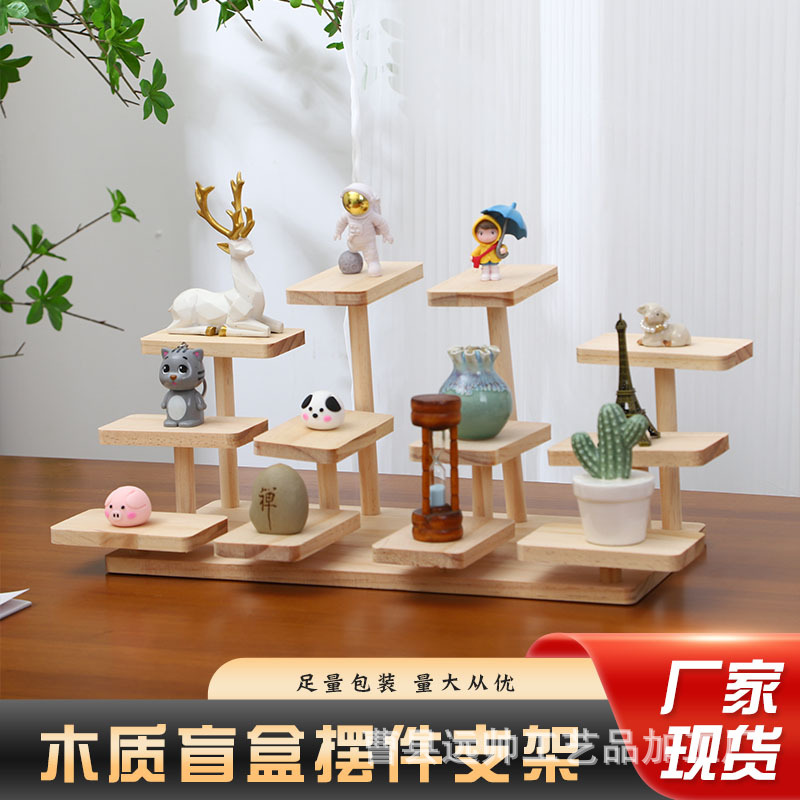 シンプルな木製の手で物を置く棚家庭用デスクトップ階段式ブラインドボックスの置物棚
