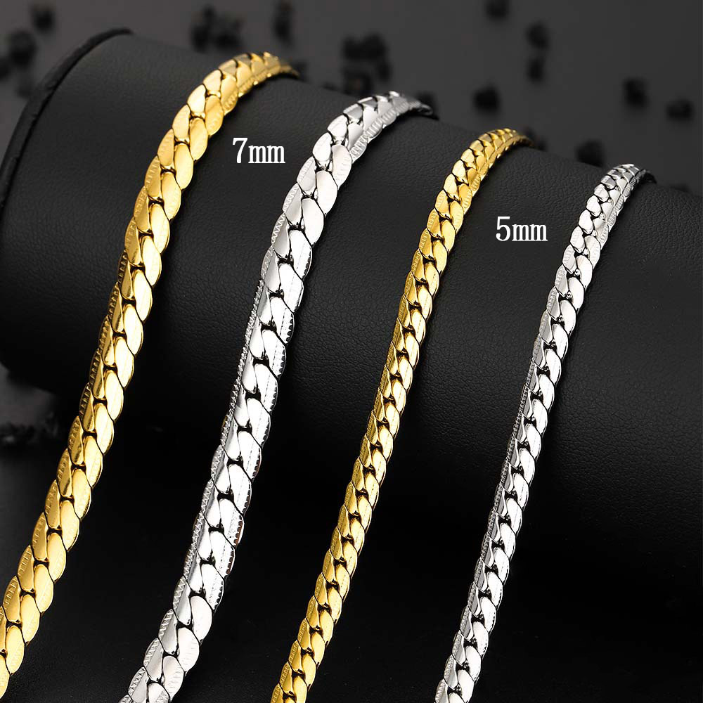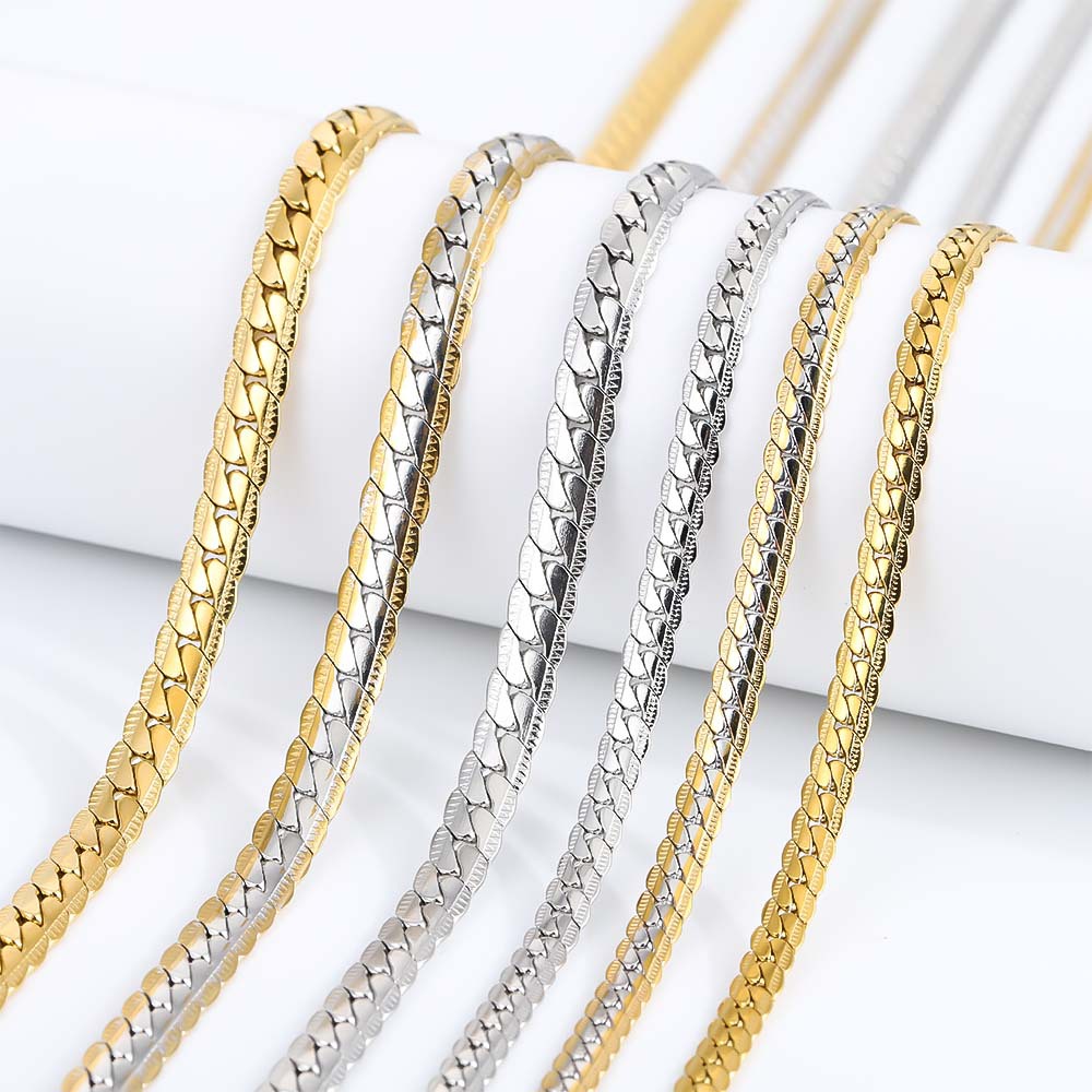 ファッショナブルでハイエンドなヘビ革チェーン INS 多用途で気質を暗号化したフラット NK キューバ チェーン ステンレス鋼の男性と女性のネックレス