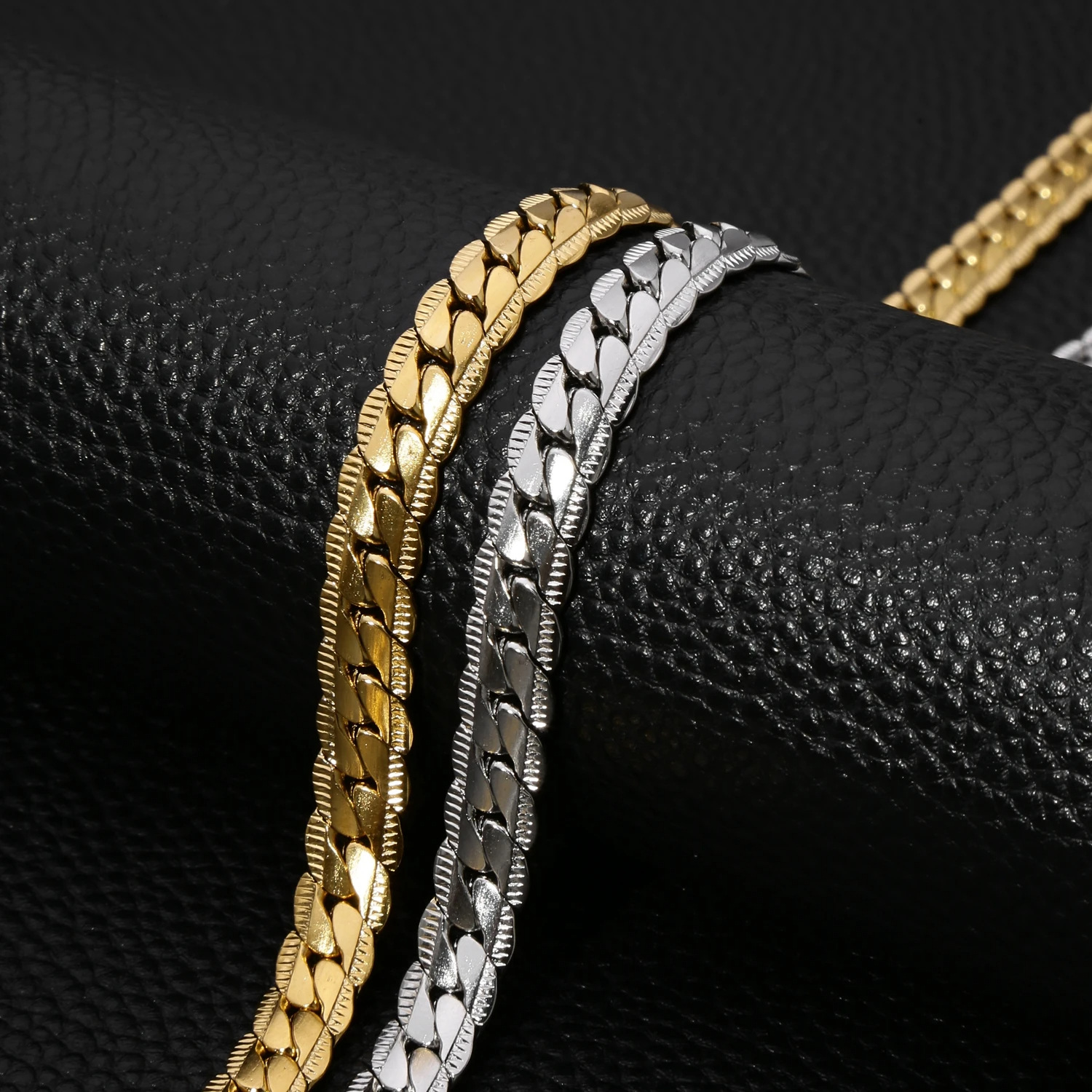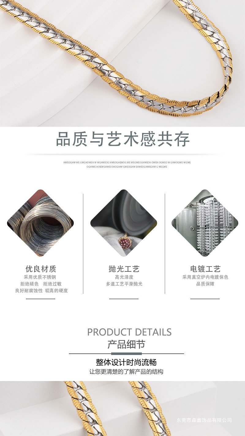 跨境电商热销不锈钢真空电镀古巴链条扁平压花项链压花NK男士项链
