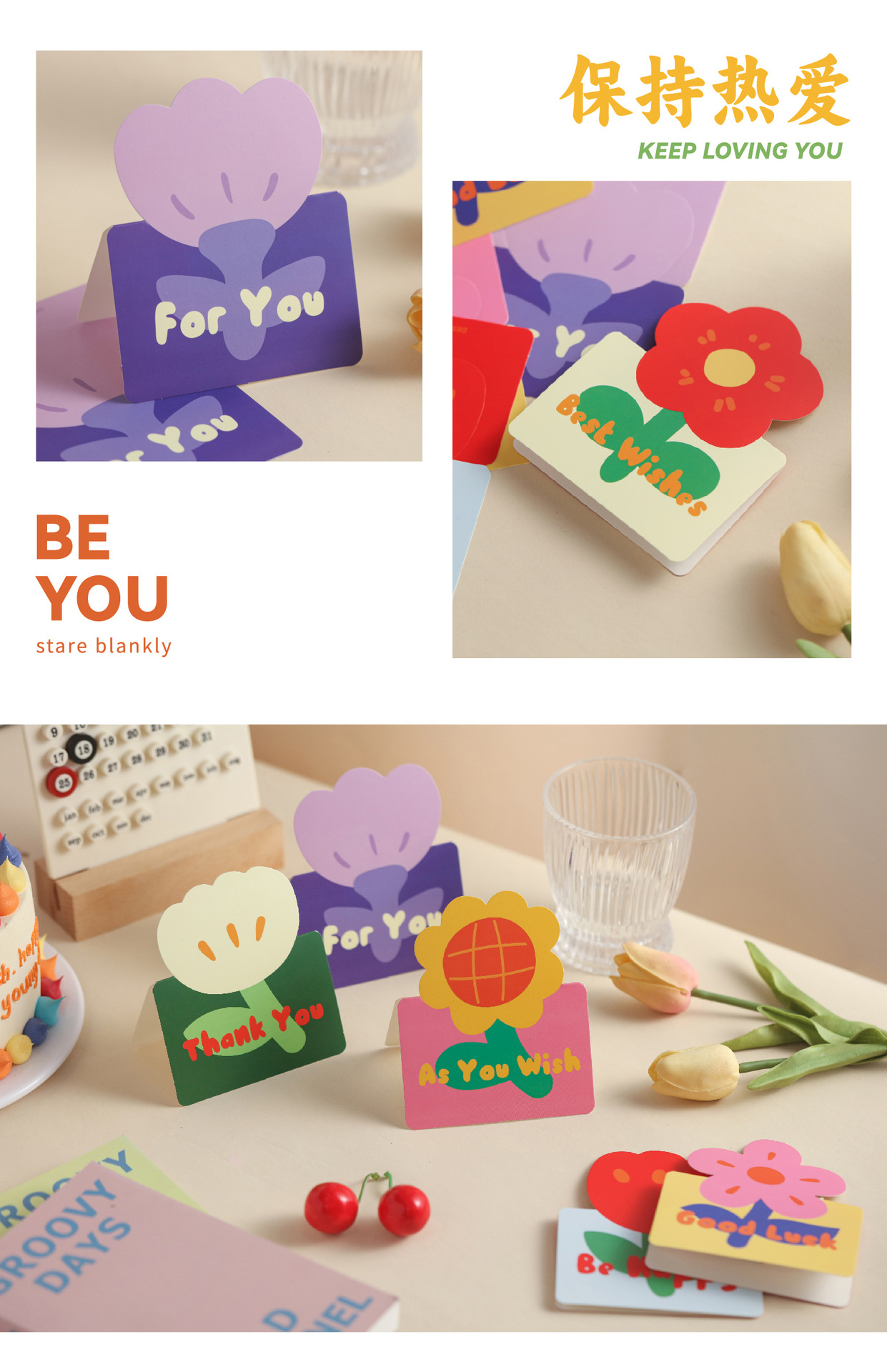 クリエイティブな花の贈り物、花束、グリーティングカード、高級な小さなカード、ギフト、誕生日グリーティングカード、祝福、手書きの感謝状