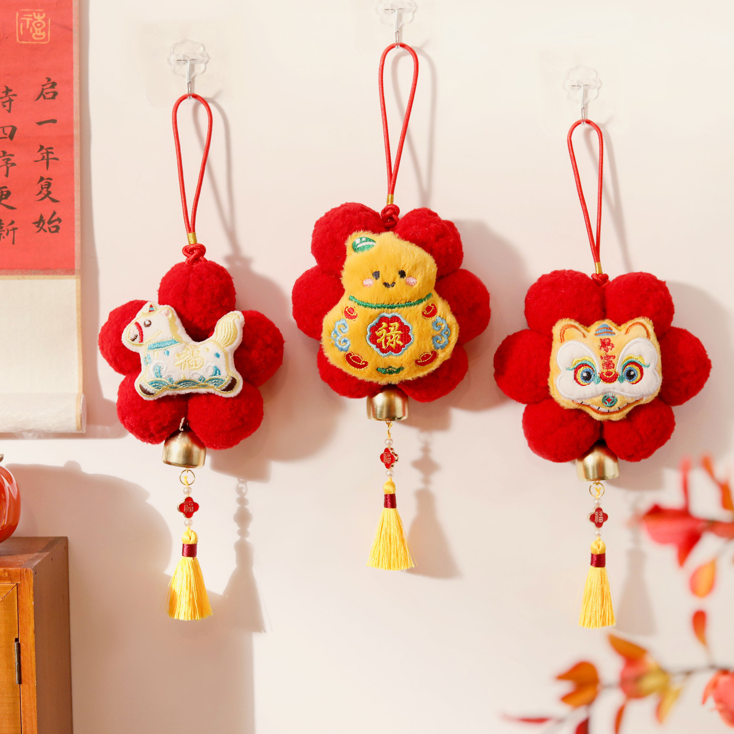 2026马年装饰毛绒挂件小红花新年喜庆氛围布置装饰门挂