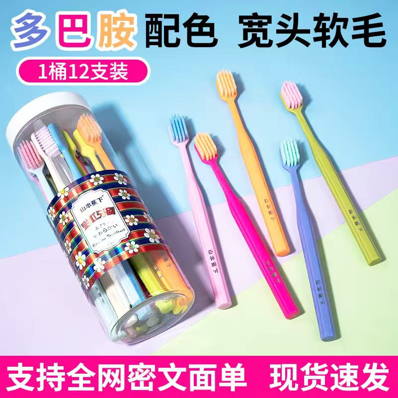 山本 Jiaoxia レインボー歯ブラシ 12 個ファミリーバレル本物の卸売大人のワイドヘッドハイエンド家庭用歯ブラシ柔らかい毛