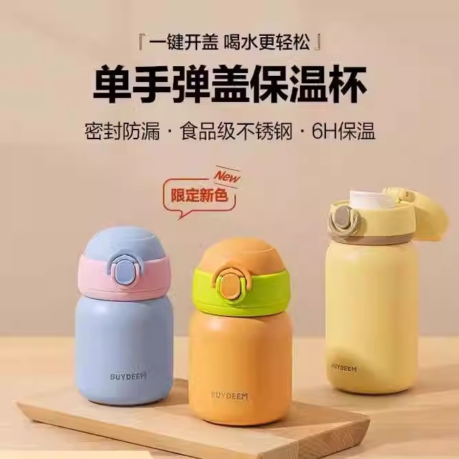 【コントラストカラーの新製品】北鼎ガールズ用弾丸蓋魔法瓶カップ、かわいいウォーターカップ、見栄えの良いステンレス製片手ポータブルカップ