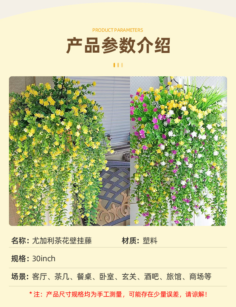 メーカー直販越境シミュレーションユーカリバラ茶花垂れ掛け藤吊蘭プラスチック人工屋外客間装飾