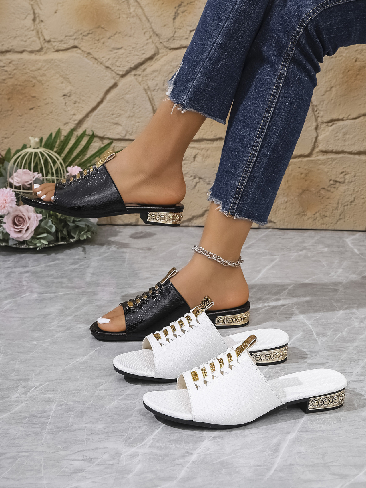 2025拖鞋跨境专供欧美外贸春夏季新款女式平底低跟凉鞋轻便防滑