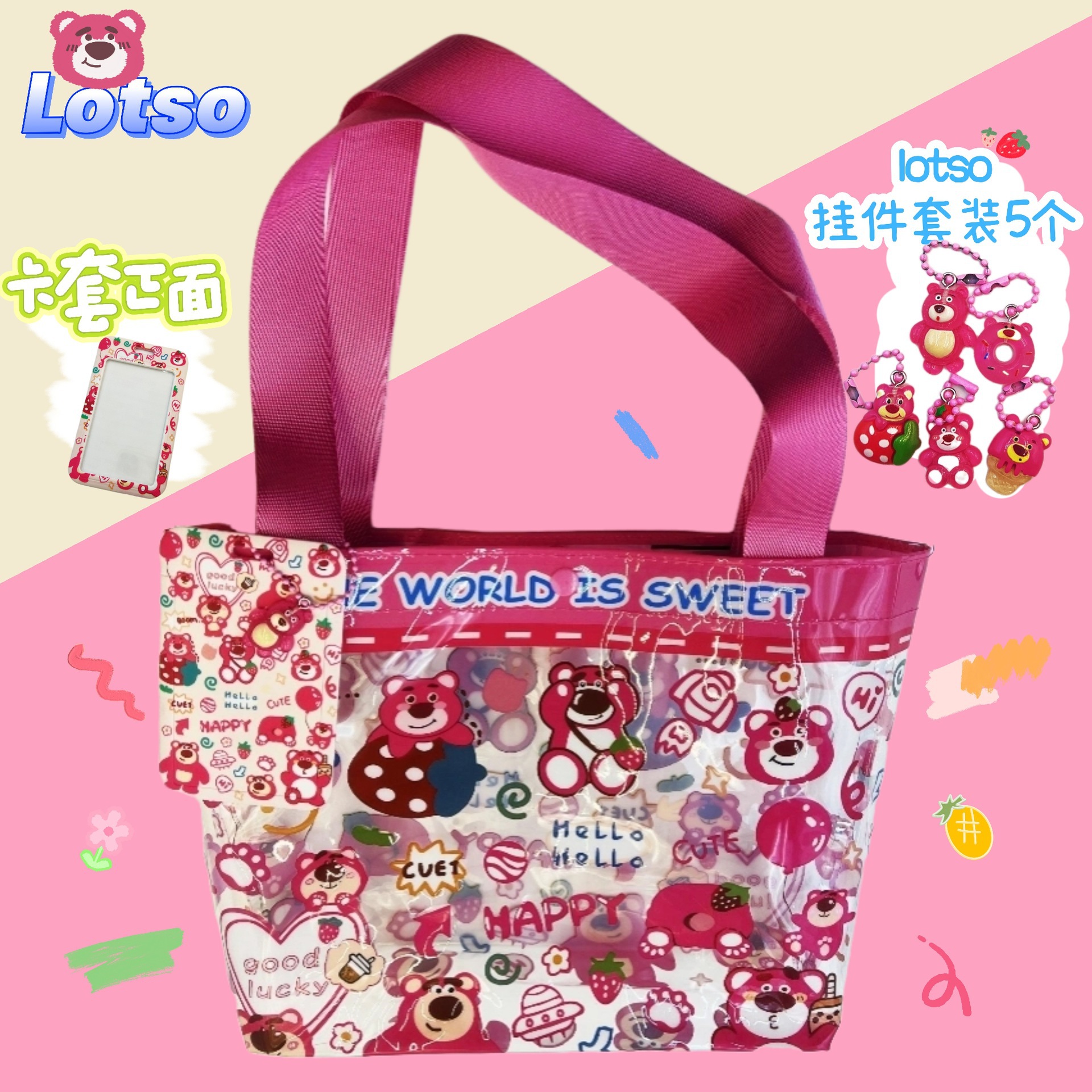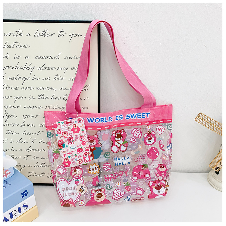 Insシンプルな透明なビーチバッグ夏の旅行ハンドバッグかわいい少女心漫画ベアーのハンドバッグ