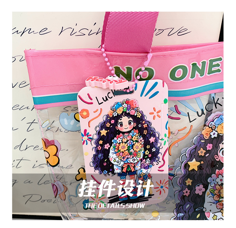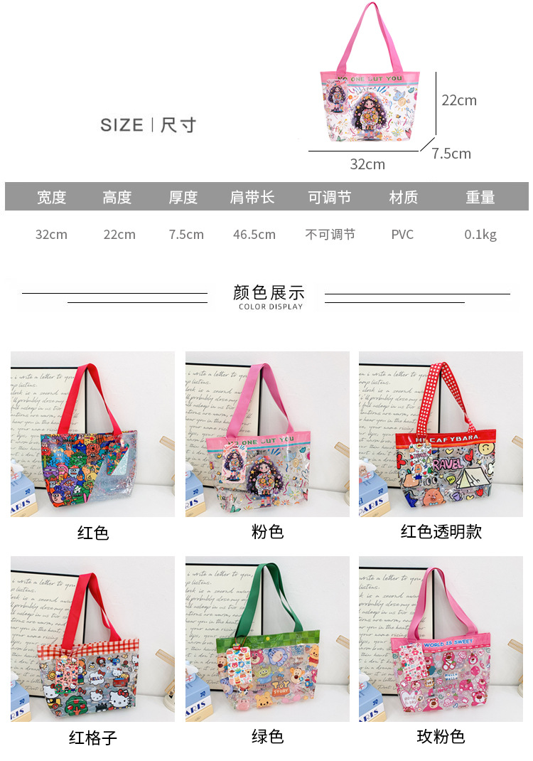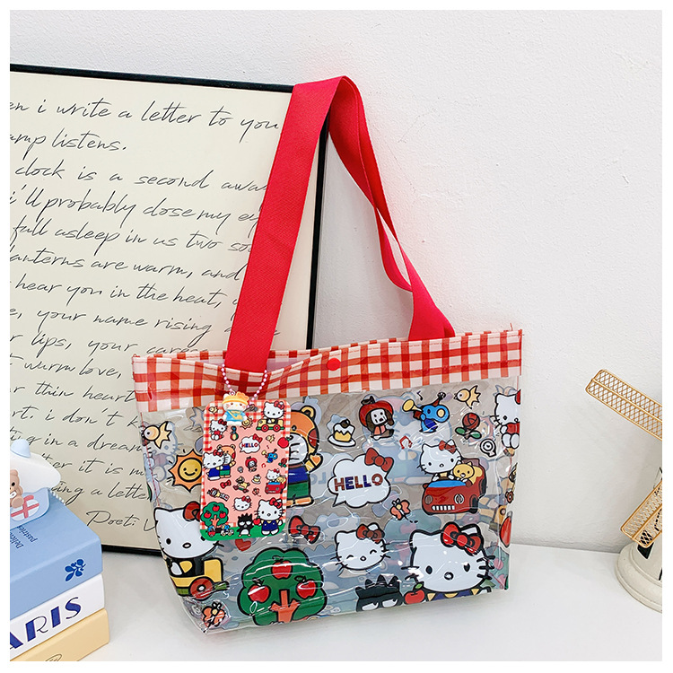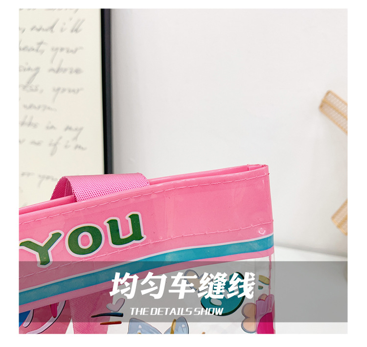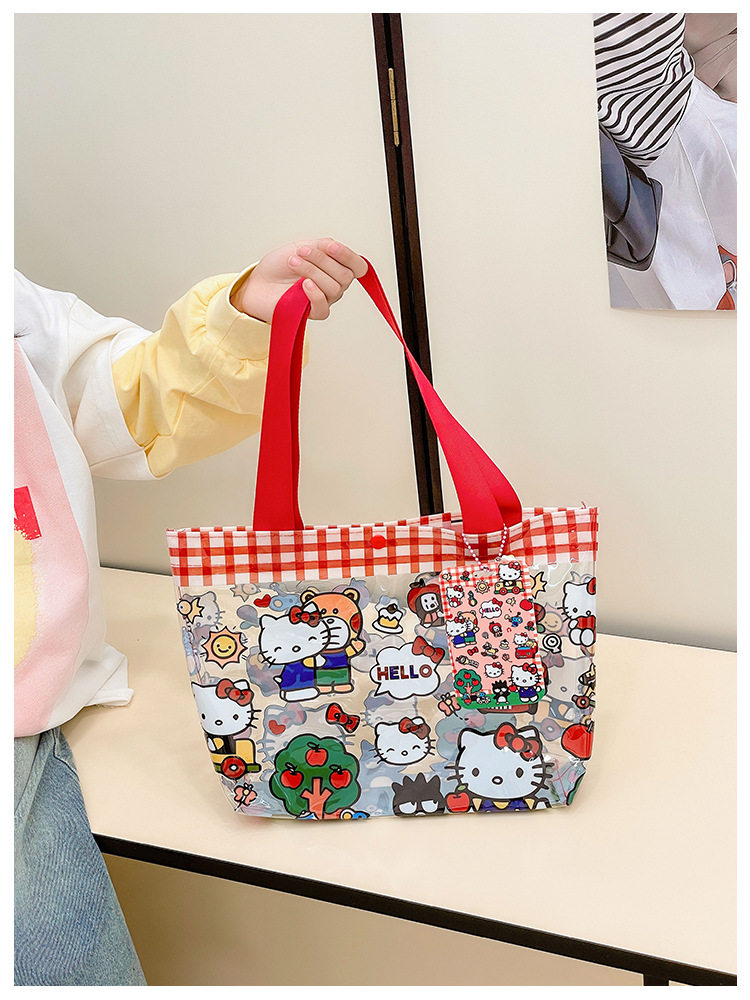 PVC生地かわいいkitty猫透明ハンドバッグ高颜値漫画レジ袋プリント軽量手提げ袋女