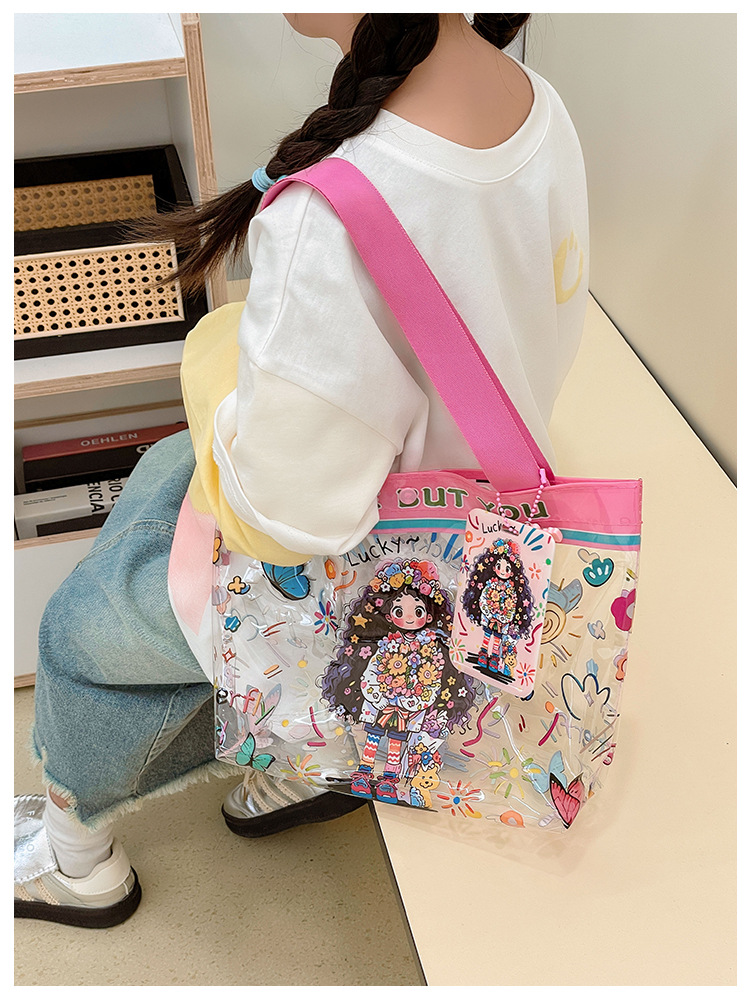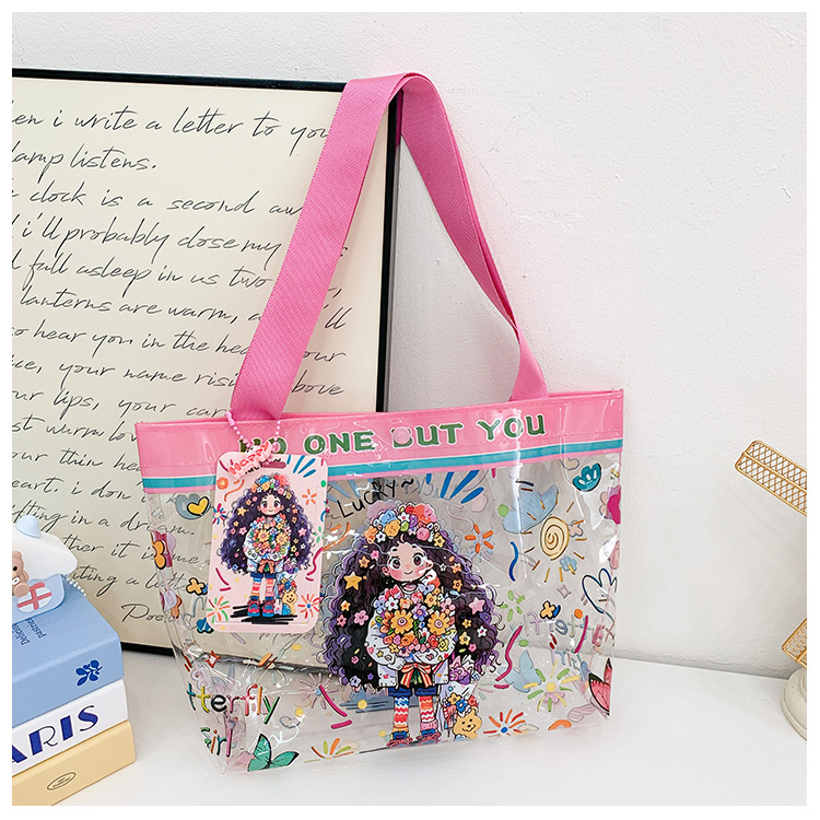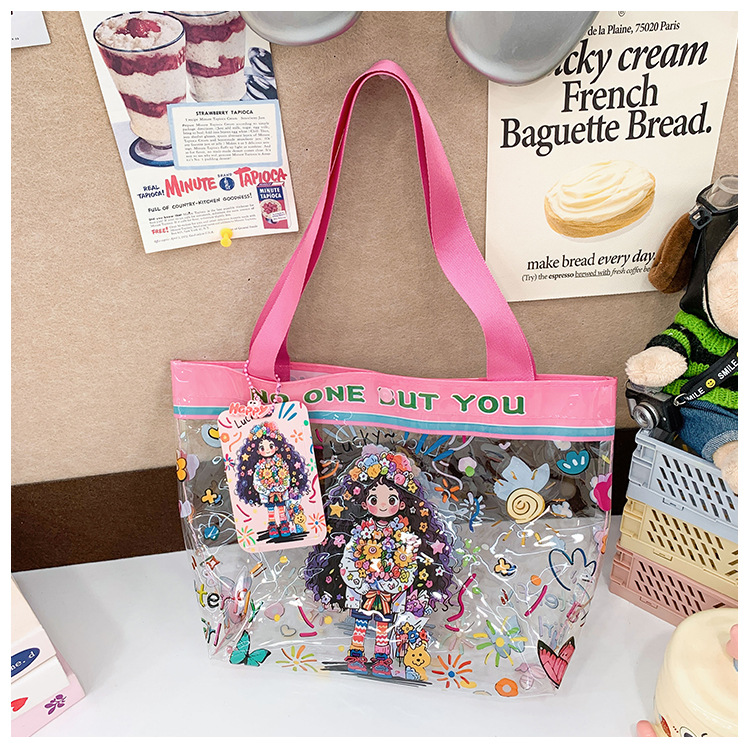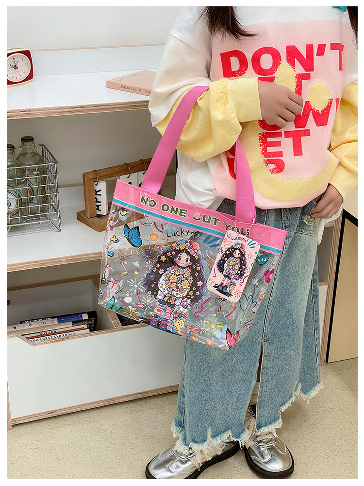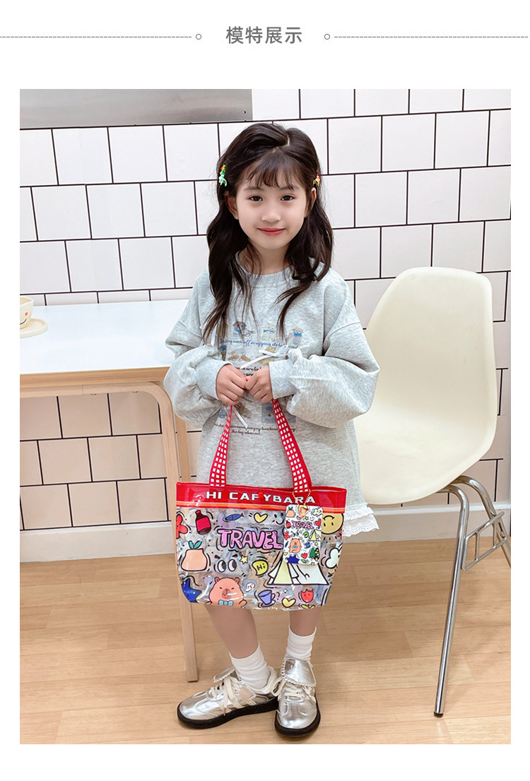 卸売透明かわいい漫画子供バッグ大容量高颜値ハンドバッグ夏シングル肩ビーチゼリーバッグ潮