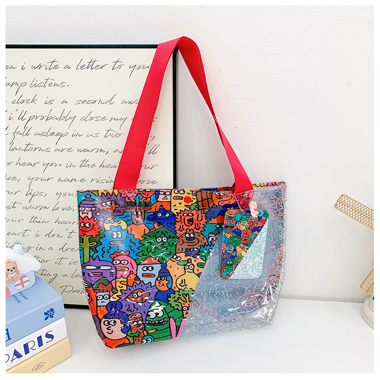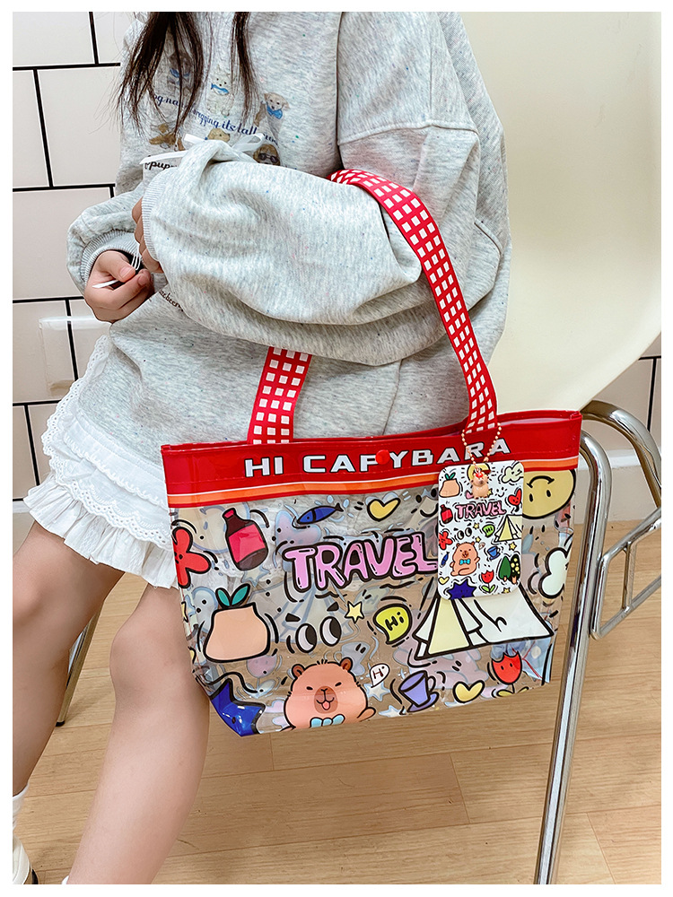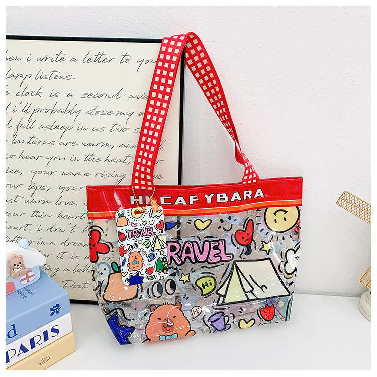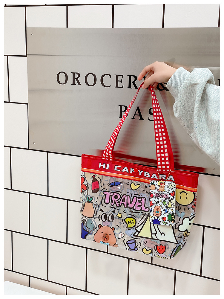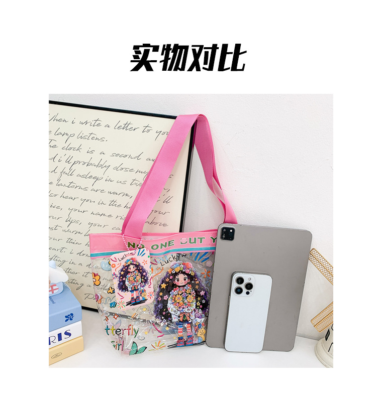卸売透明かわいい漫画子供バッグ大容量高颜値ハンドバッグ夏シングル肩ビーチゼリーバッグ潮