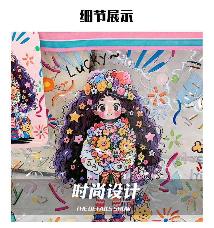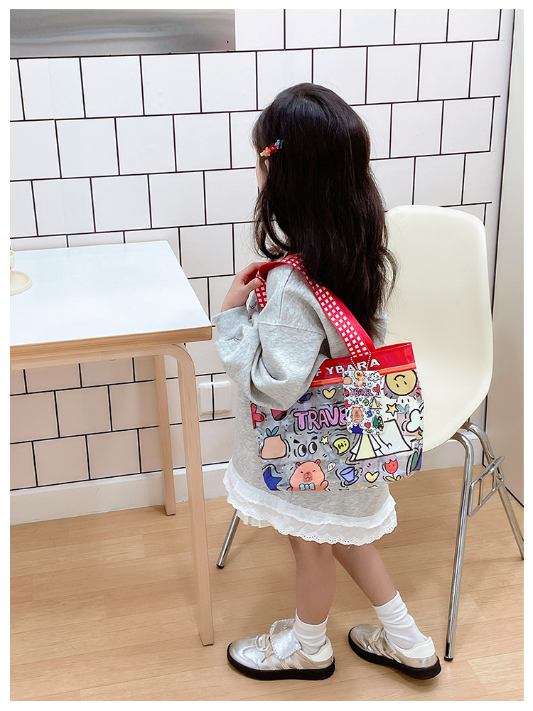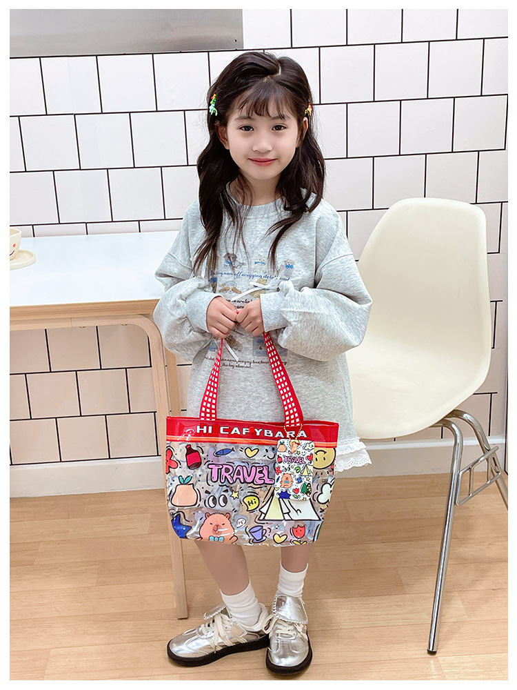 漫画透明子供っぽい日常多用途ハンドバッグトートバッグ大容量収納袋子供の本の収納