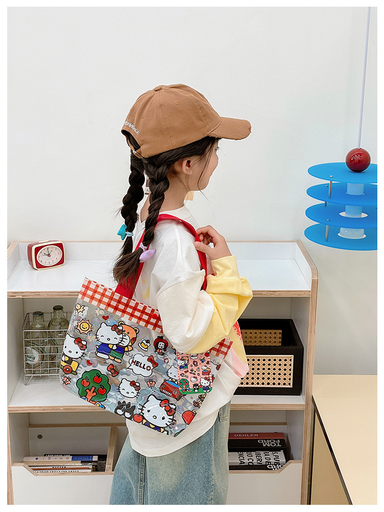 ハローキティ PVC ハンドバッグ女の子のための大容量防水ハンドバッグ漫画ショルダービーチバッグゼリーバッグ