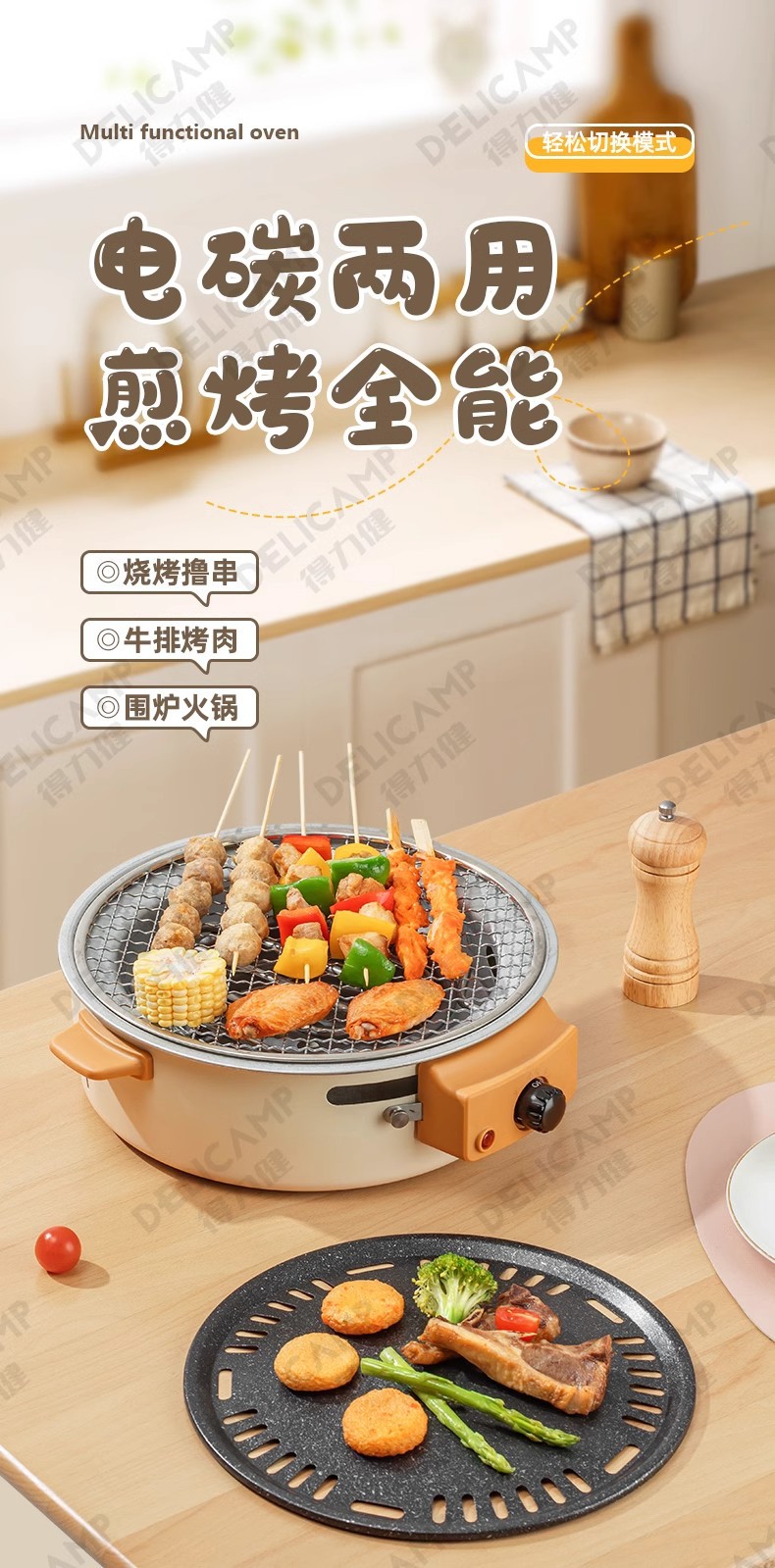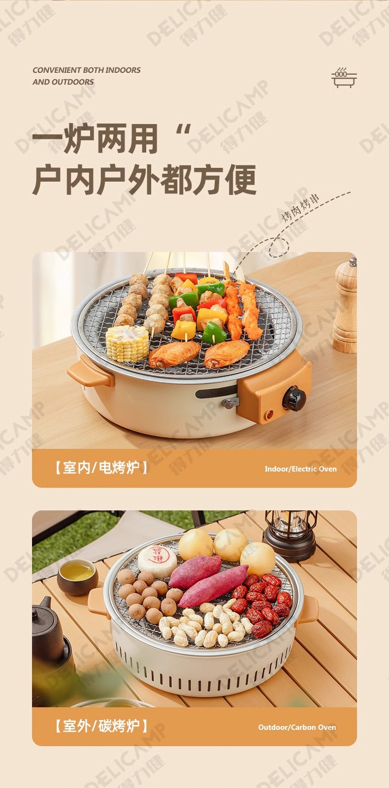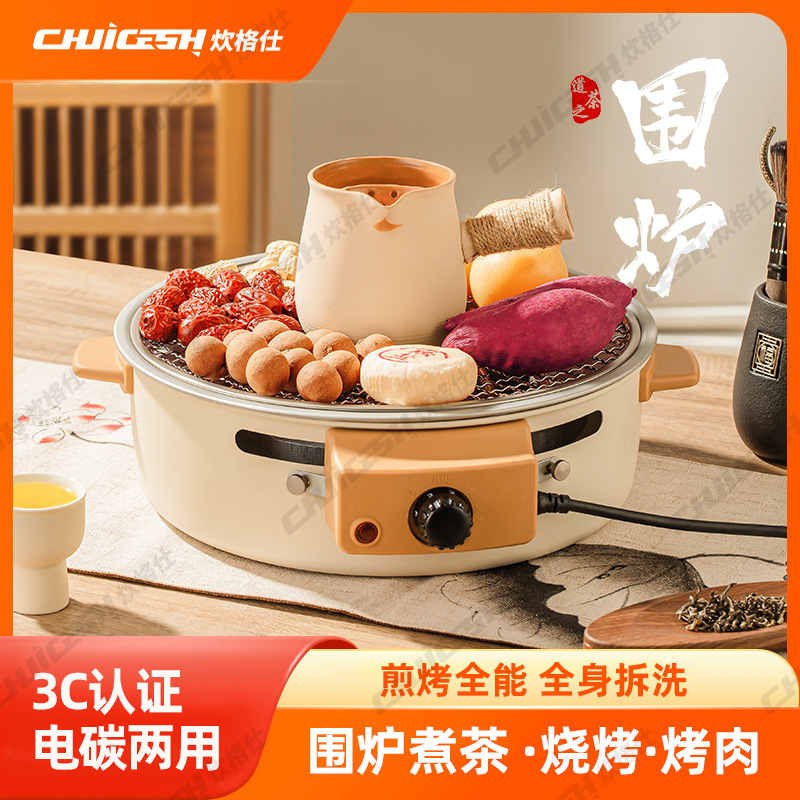新型電気囲炉裏屋外キャンプバーベキュー炉家庭用多機能電気炭素両用囲炉裏煮茶家庭用オーブン