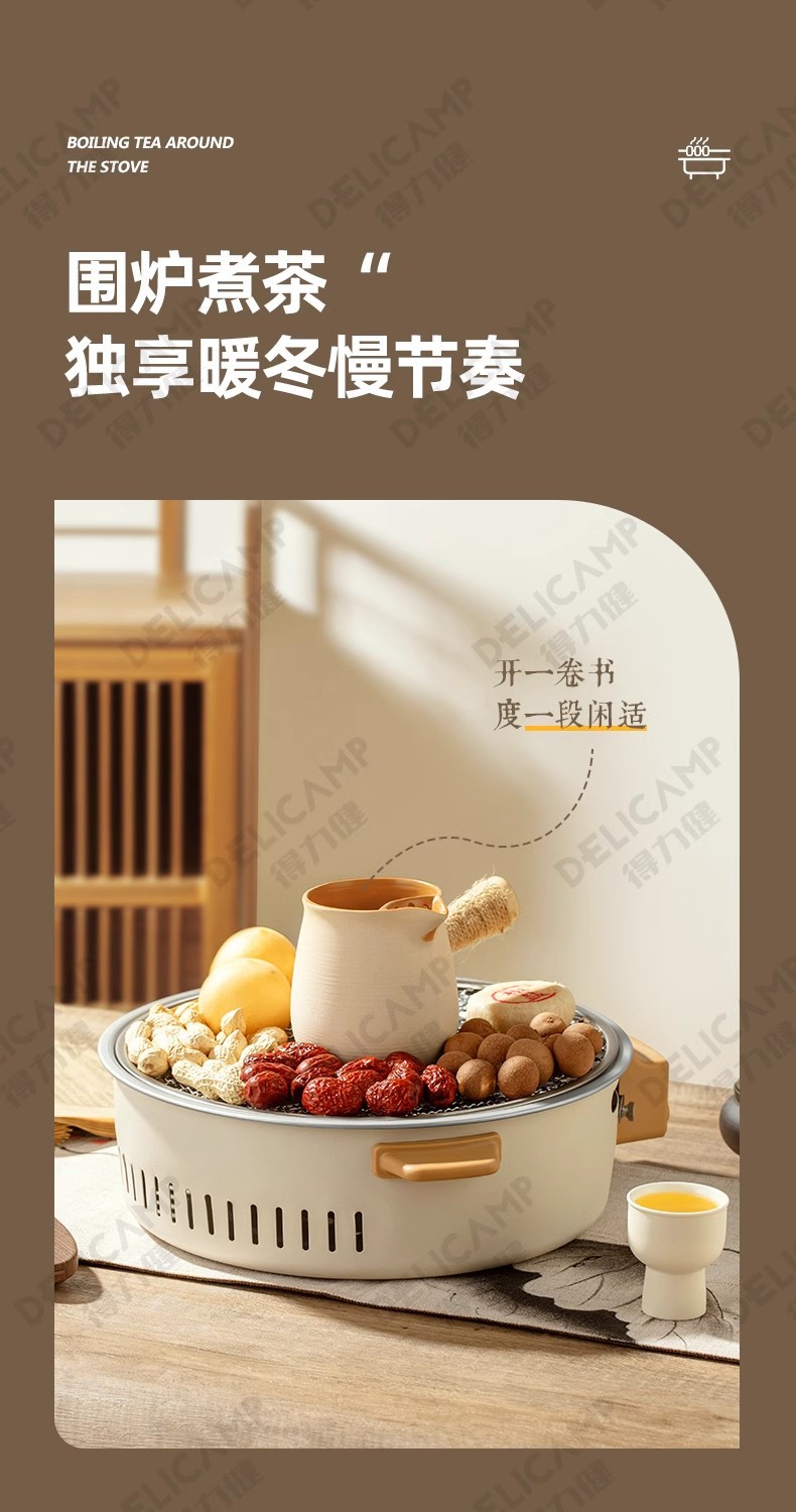 围炉煮茶室内电陶炉烤火炉家用取暖炭火炉多功能烤炉户外便携煮茶