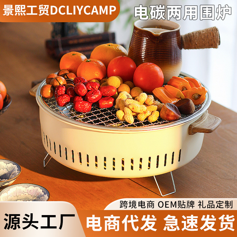 围炉煮茶烤火炉套装电碳两用烧烤炉家用户外2025新款便携圆形围炉