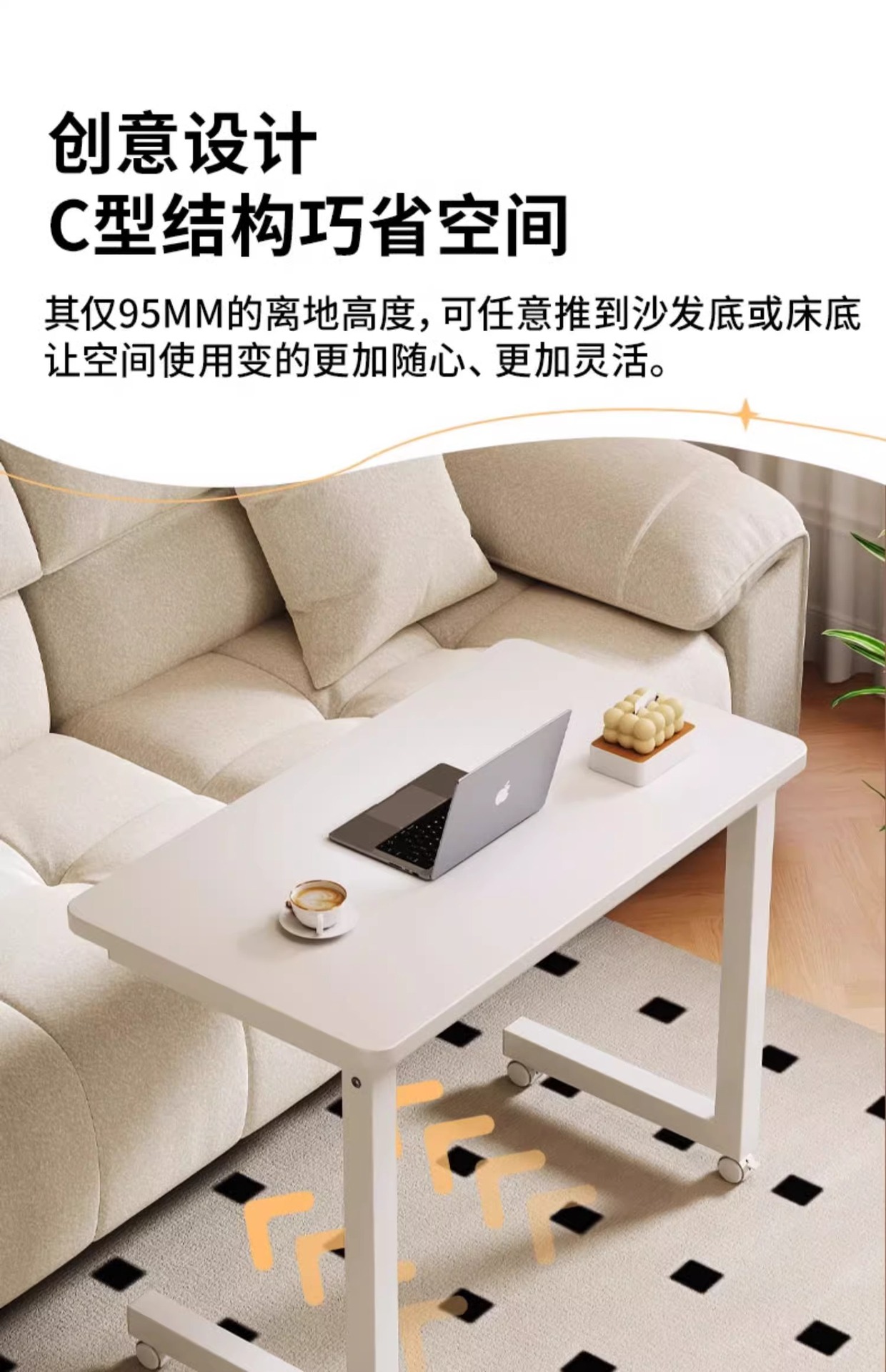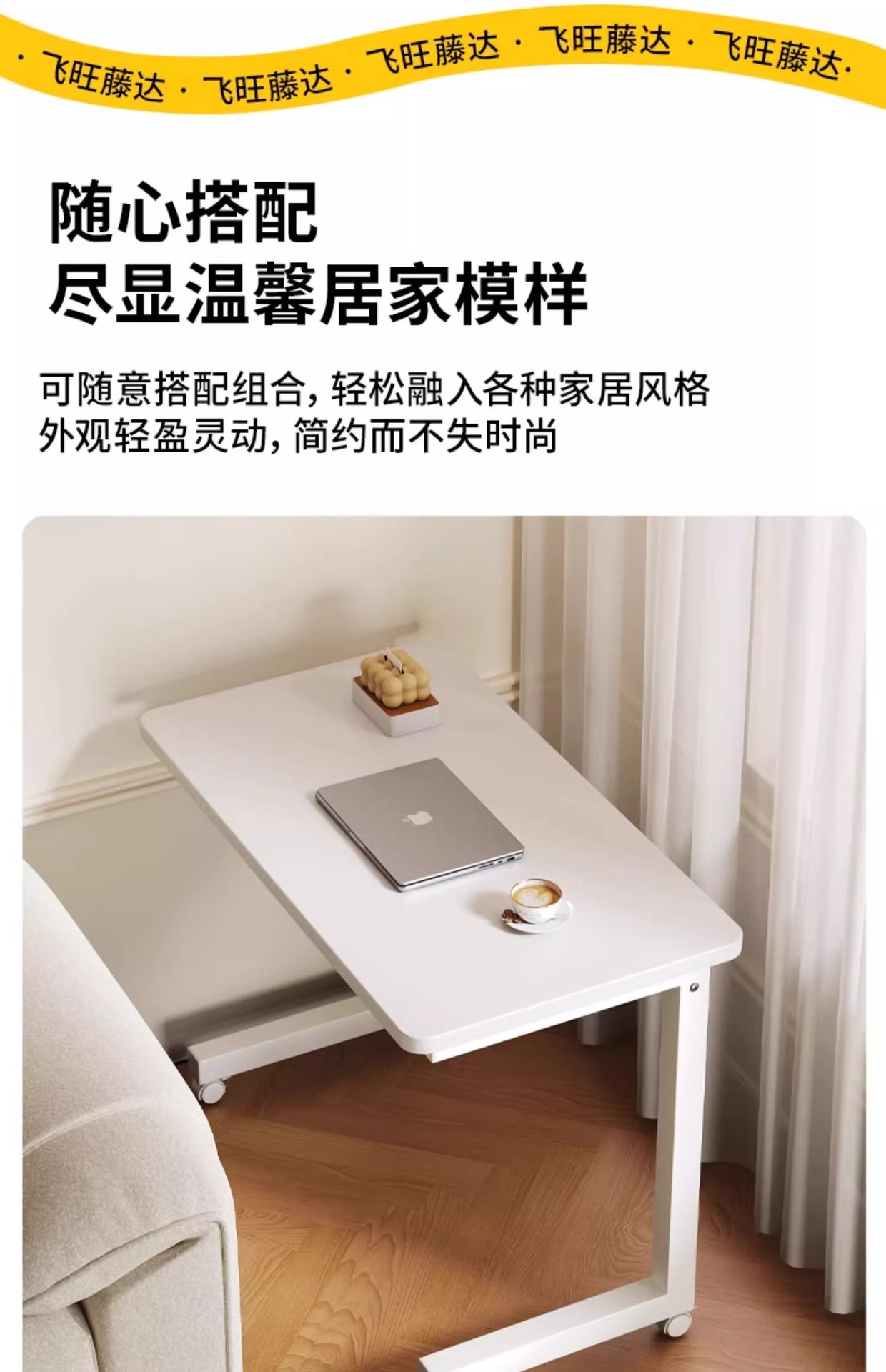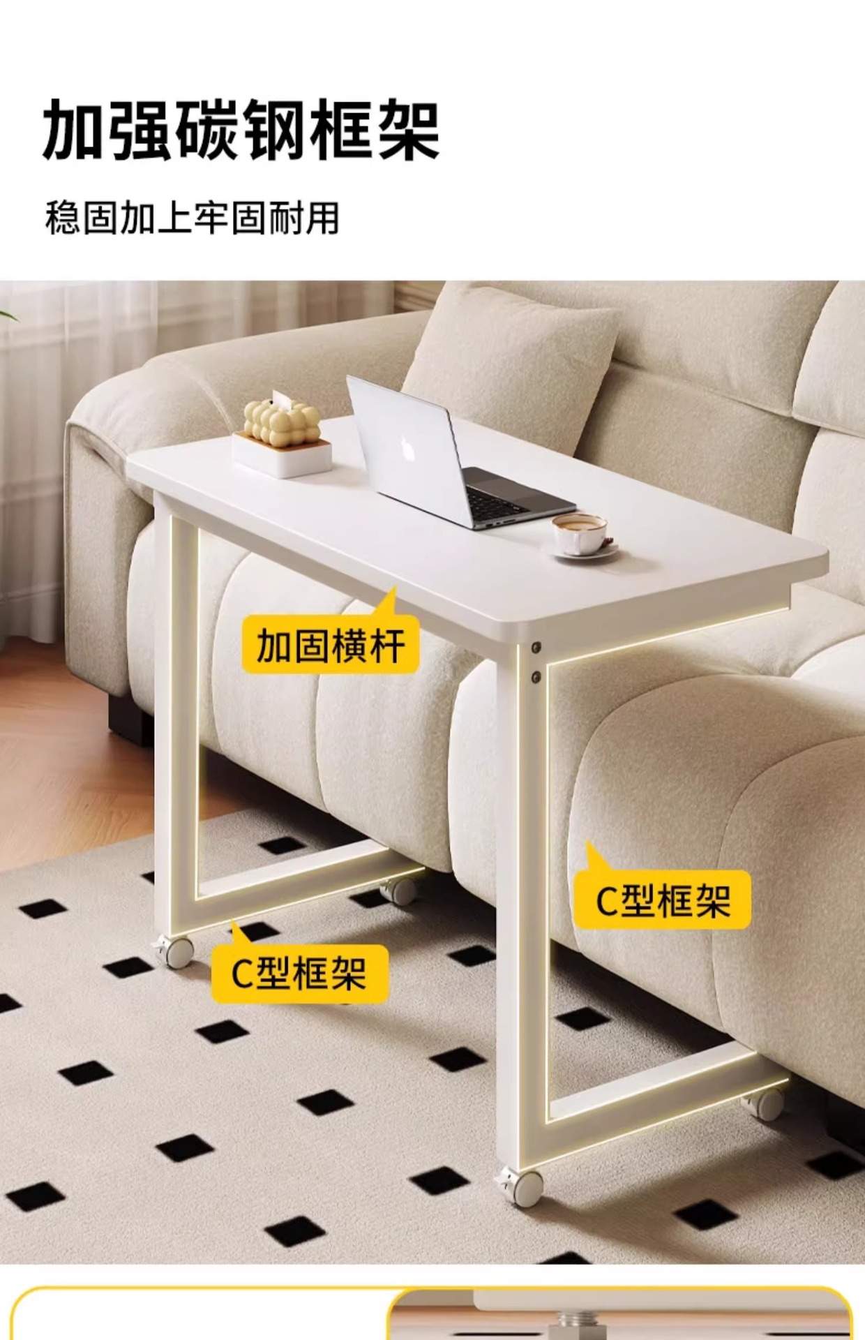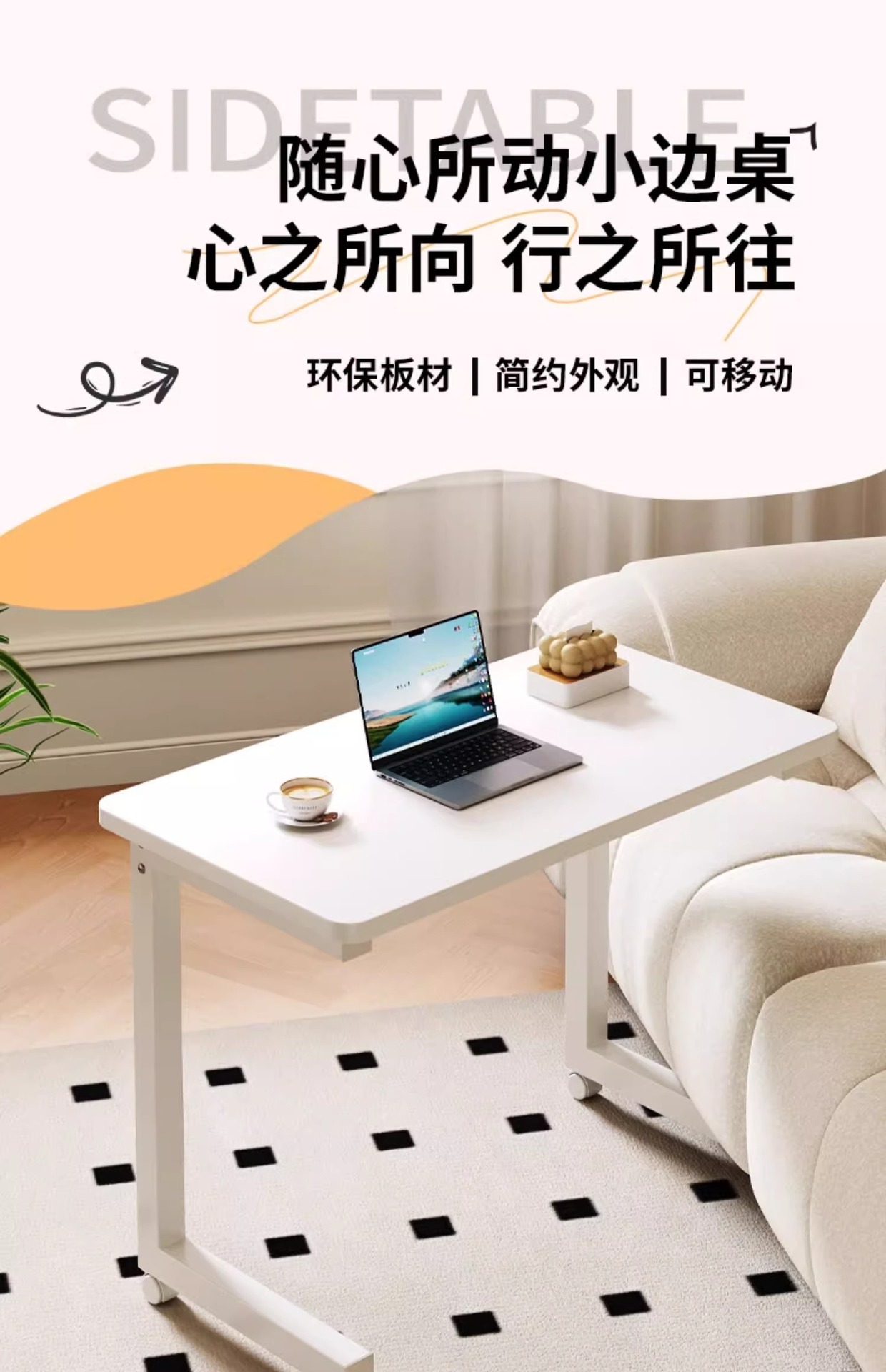 移动笔记本办公电脑桌客厅沙发旁边几茶几简易带轮长方形学习书桌