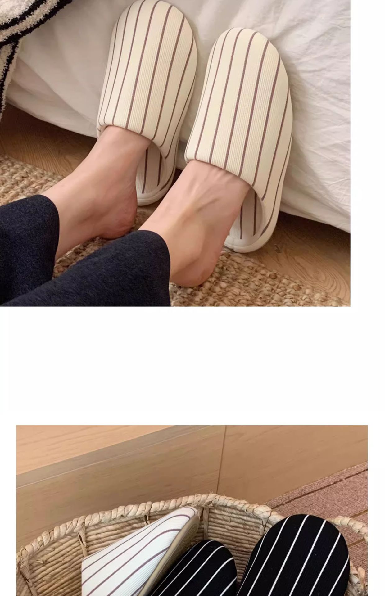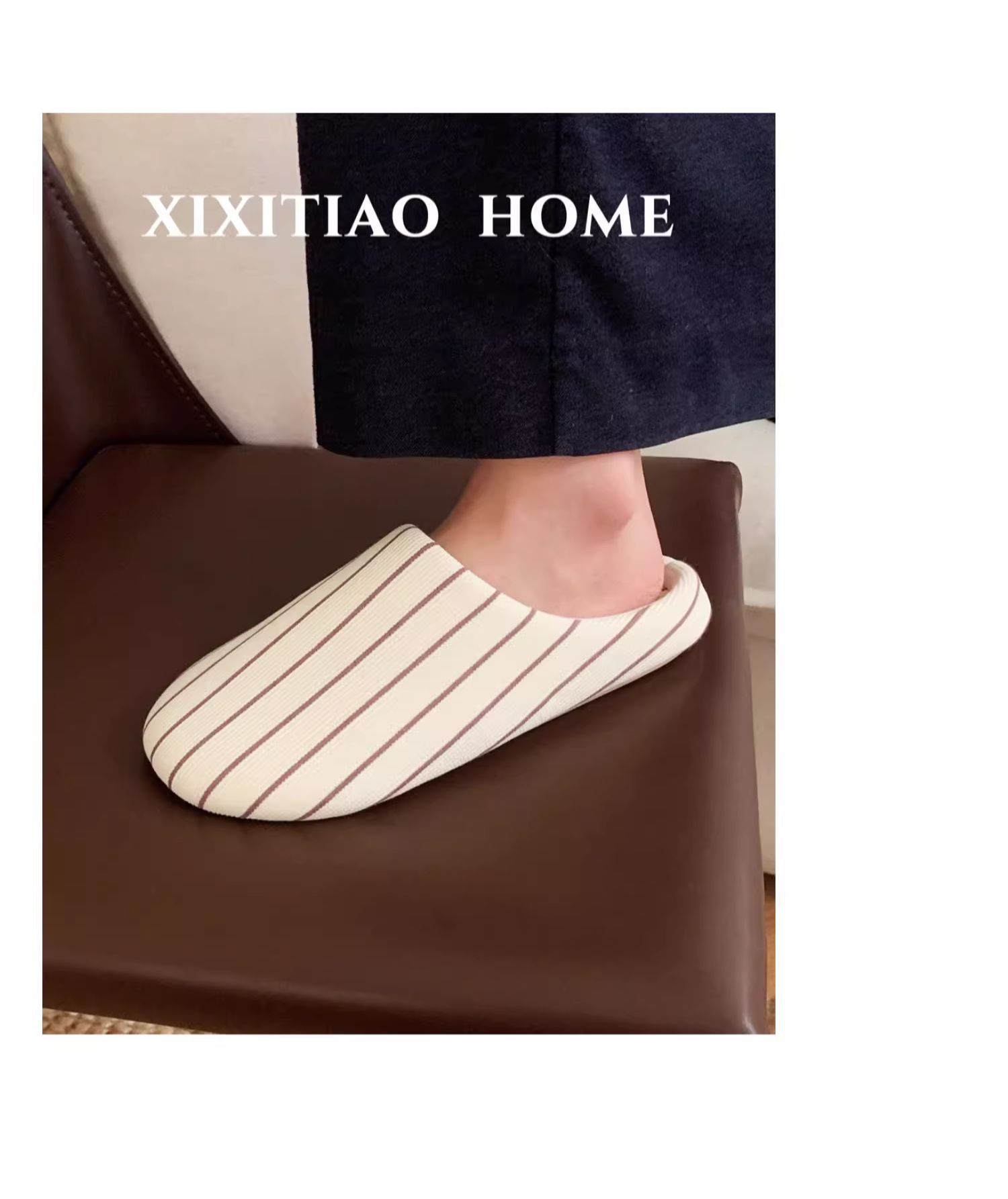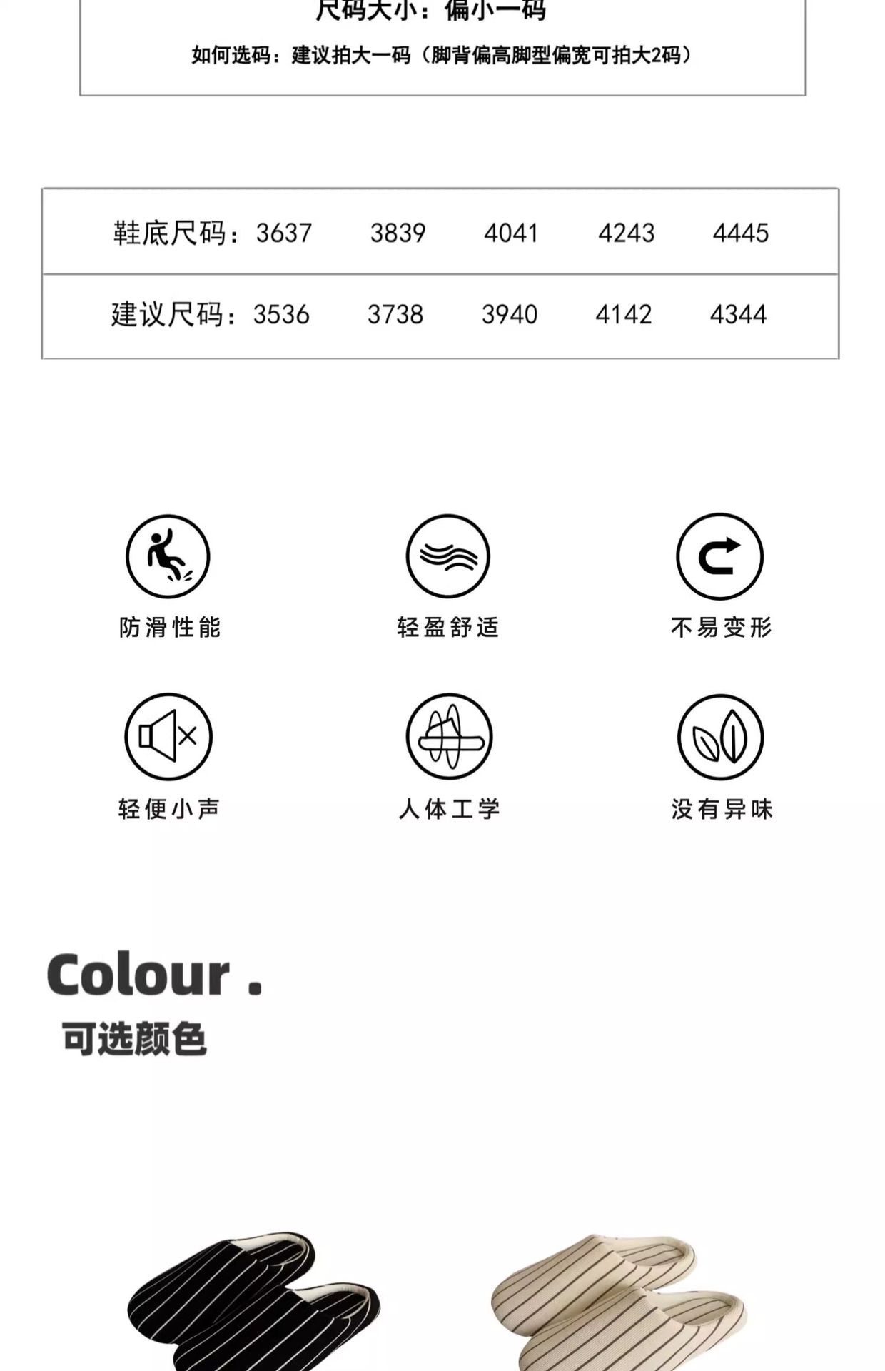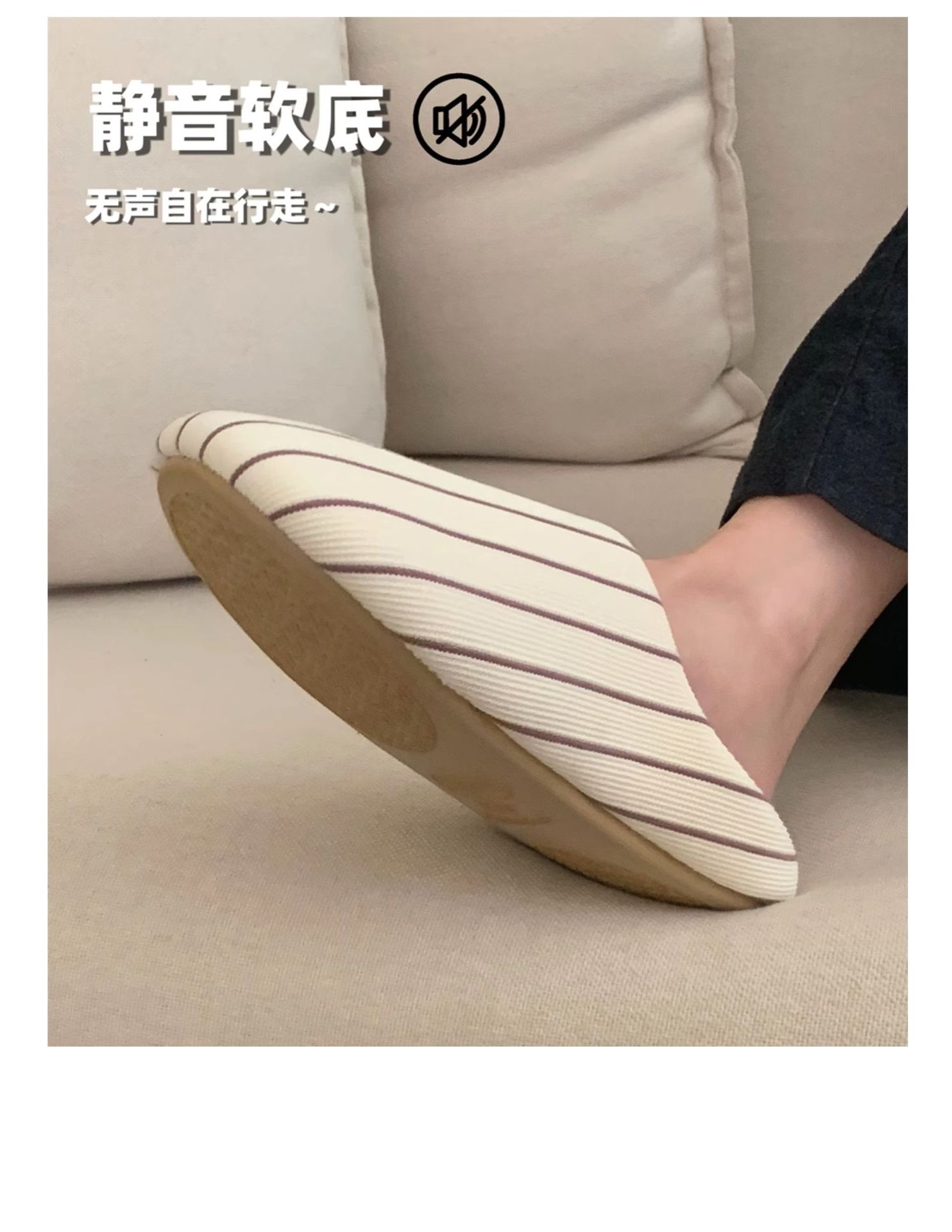 细细条 小众撞色条纹棉麻拖鞋男女舒适居家情侣空调房地板鞋秋冬