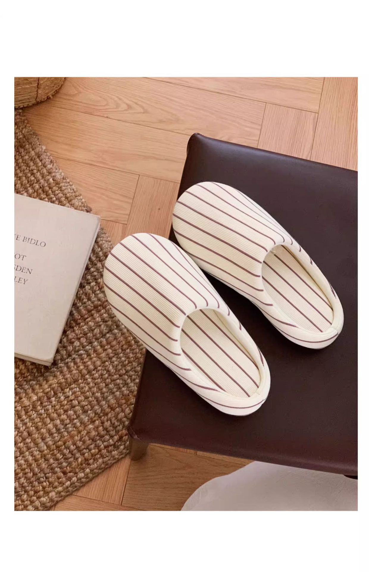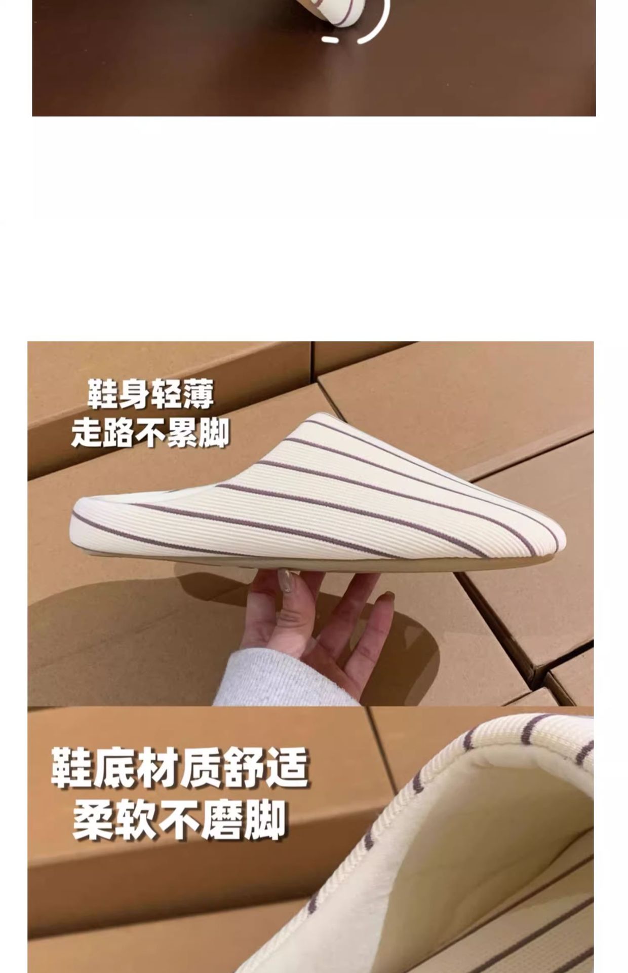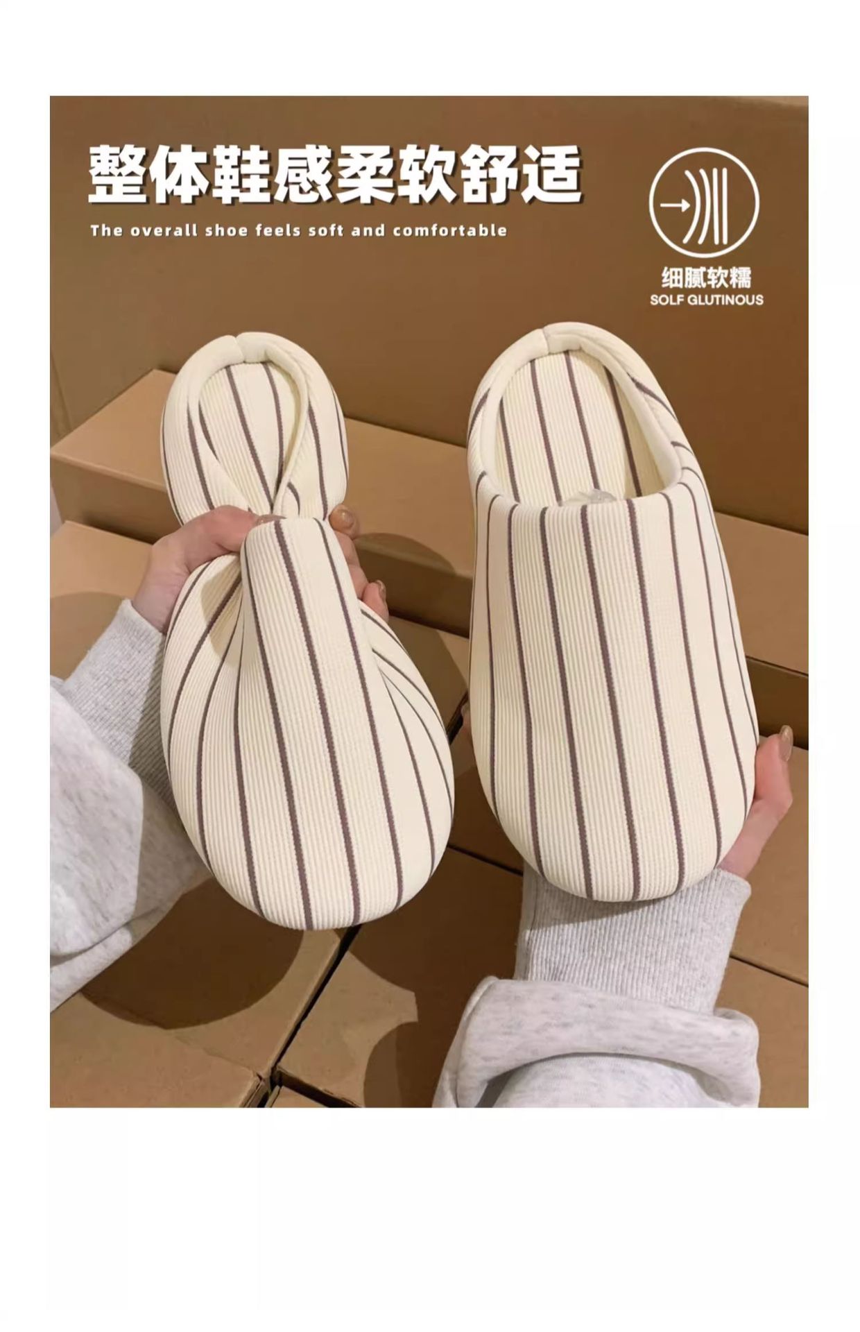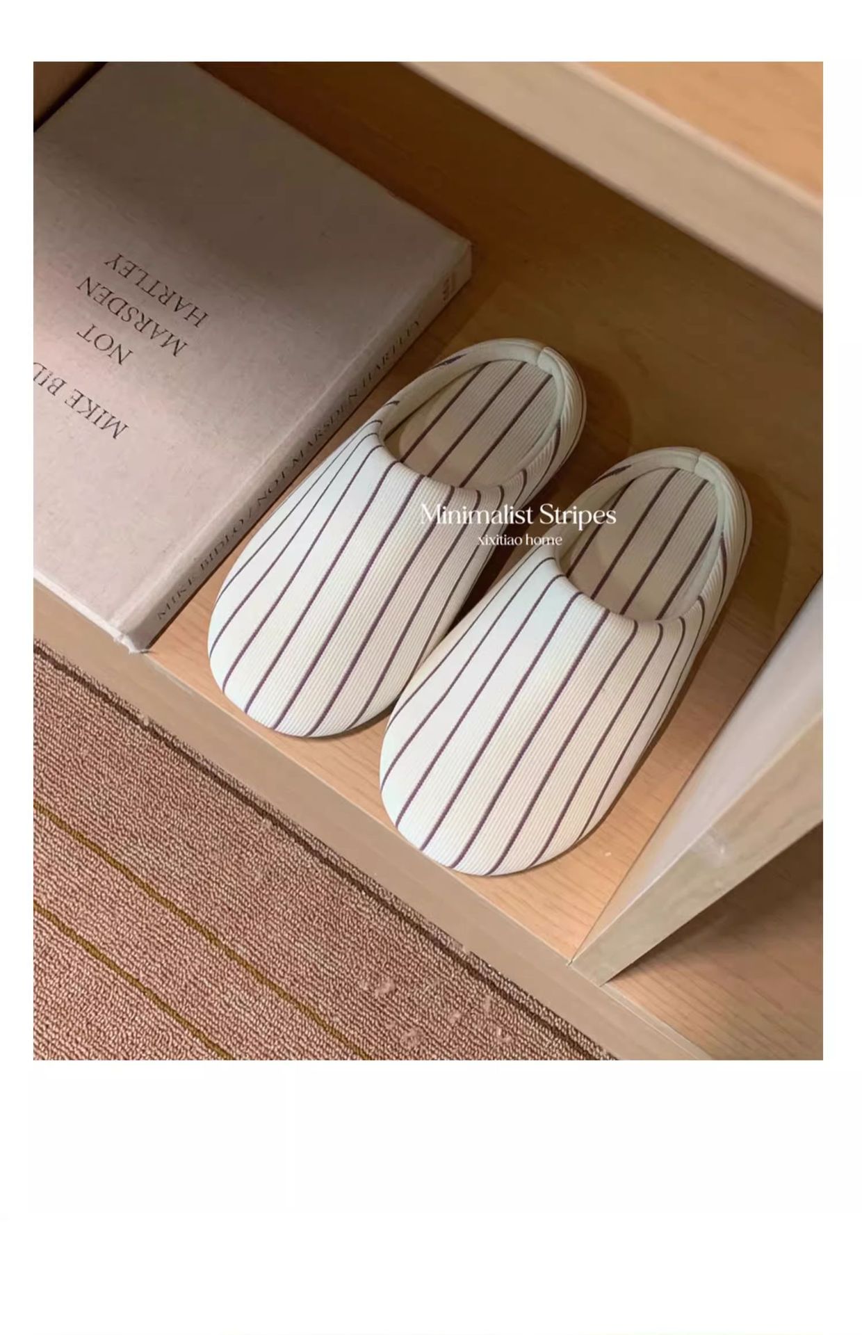 细细条 小众撞色条纹棉麻拖鞋男女舒适居家情侣空调房地板鞋秋冬