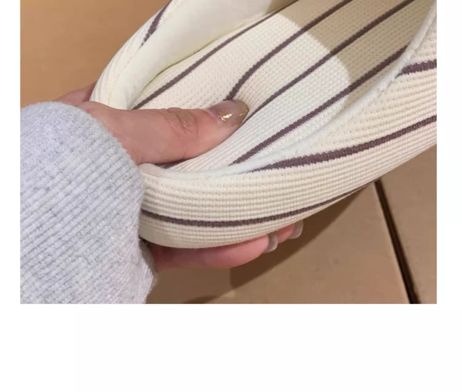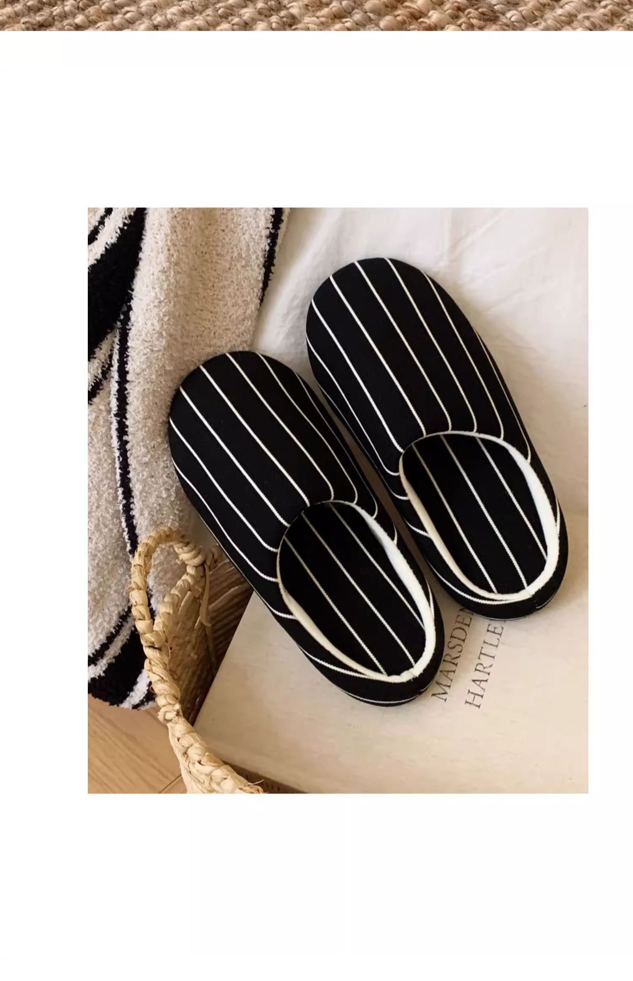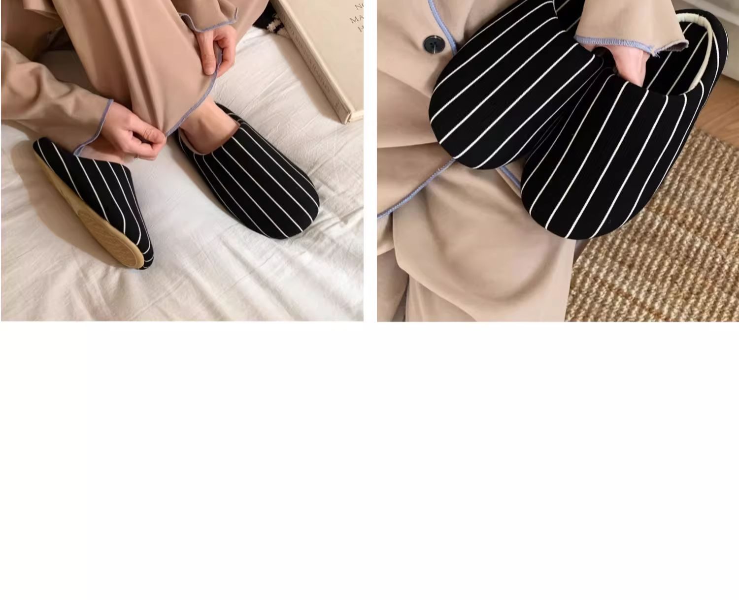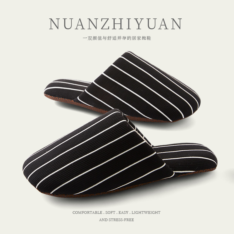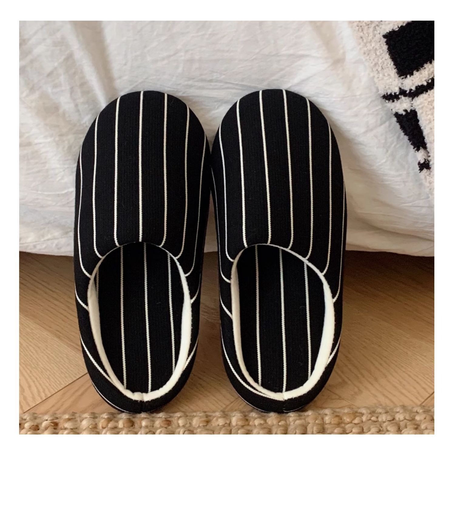 秋冬简约风男女士复古撞色条纹情侣棉拖鞋居家舒适新款棉麻地板鞋