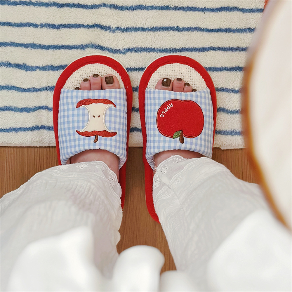 吸汗性ファッションエアコン付きルームカジュアルホームシューズ女性学生かわいいチェック柄レッドアップル春と夏のソフトソールフロアシューズ