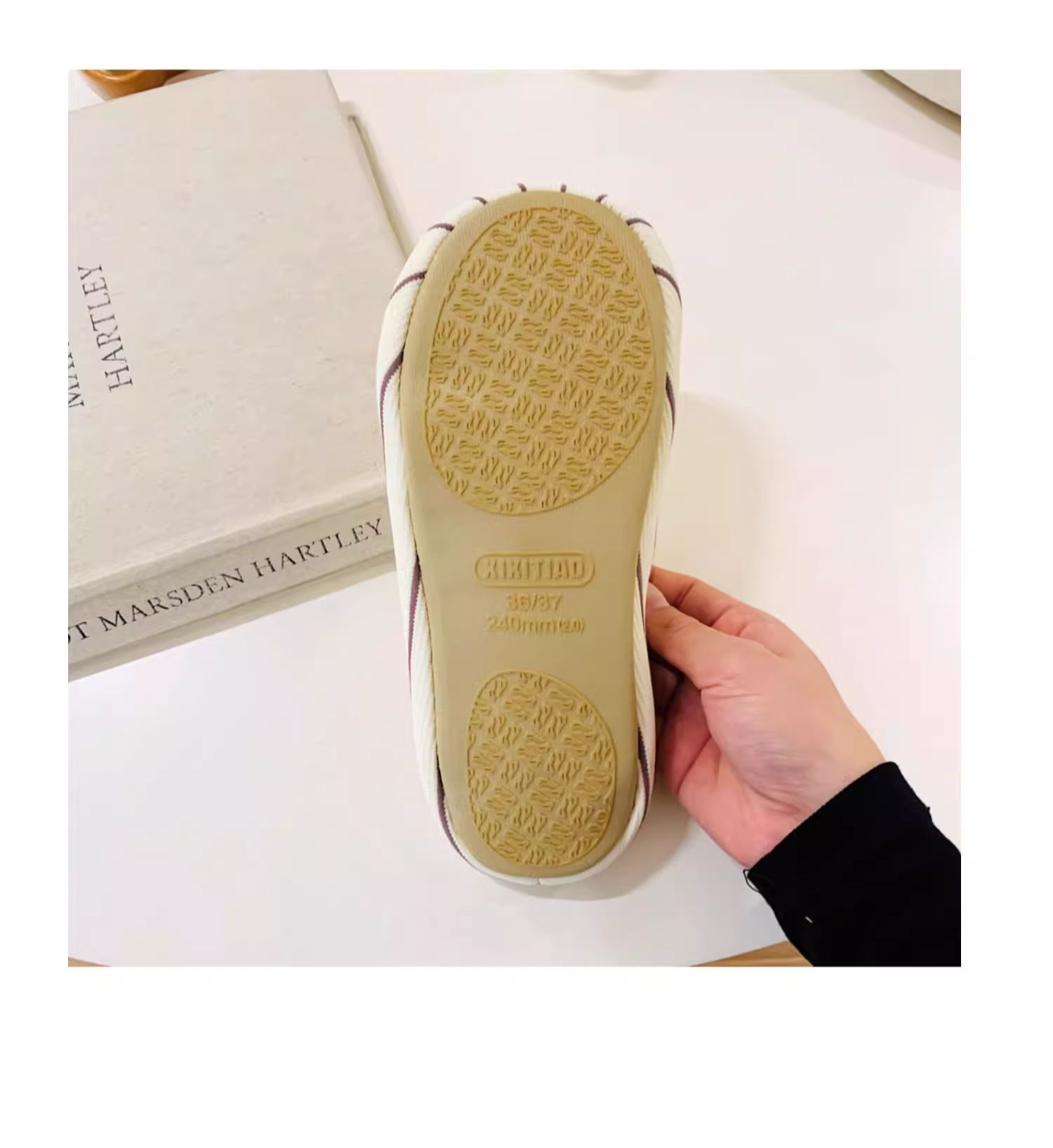 家のエアコンルームの床の靴の個性の春夏の男女のカップルの学生の包頭の復古は色のストライプの綿麻のスリッパにぶつかります。