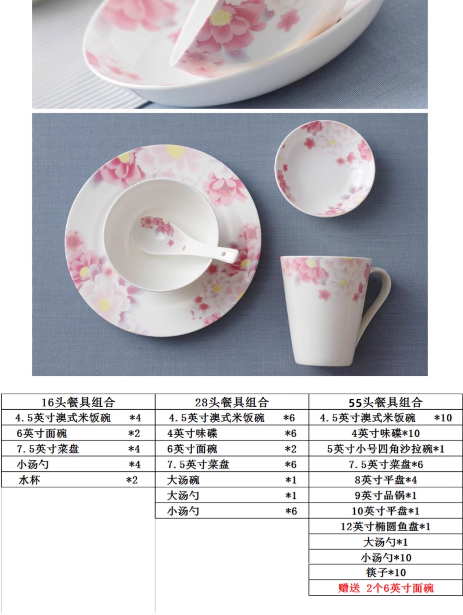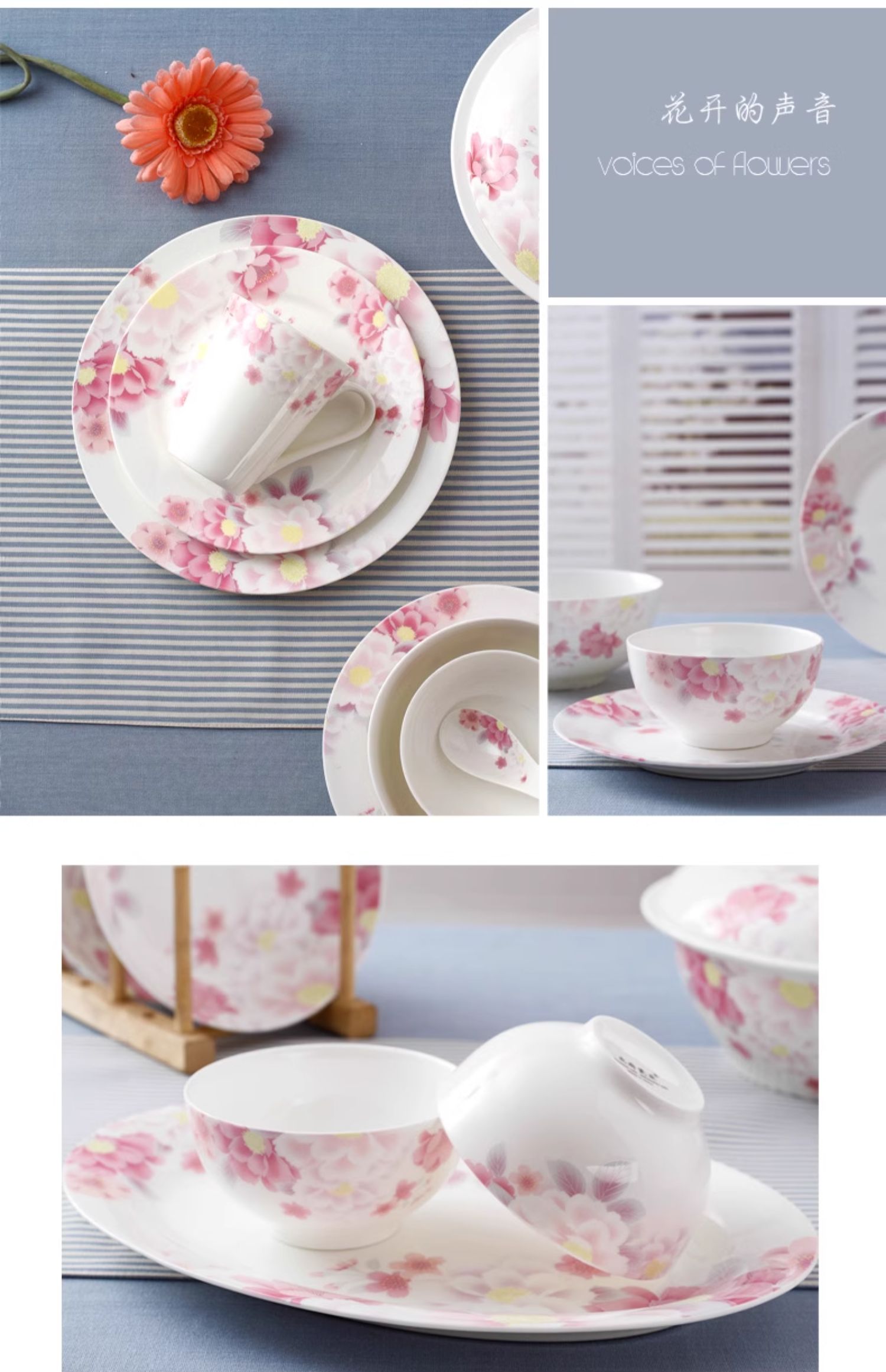 中国風の富と花のボーンチャイナ食器セット、ボウルと皿、家庭用電子レンジ対応セラミック食器、ギフトボックス