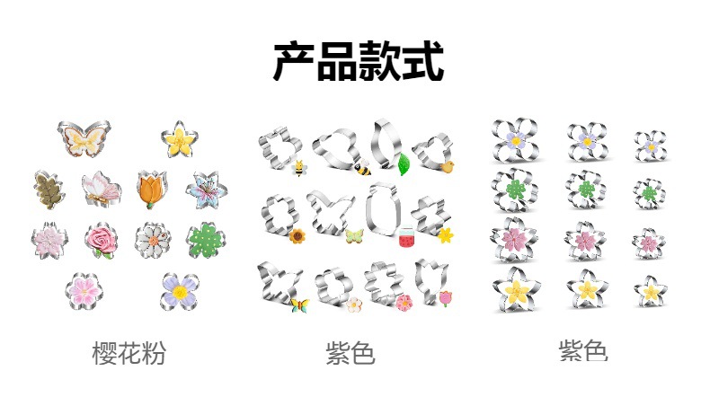 花柄ステンレス製クッキー型 水滴、花びら、葉っぱ、花束型 フォンダンカッター 花型クッキー焼き型