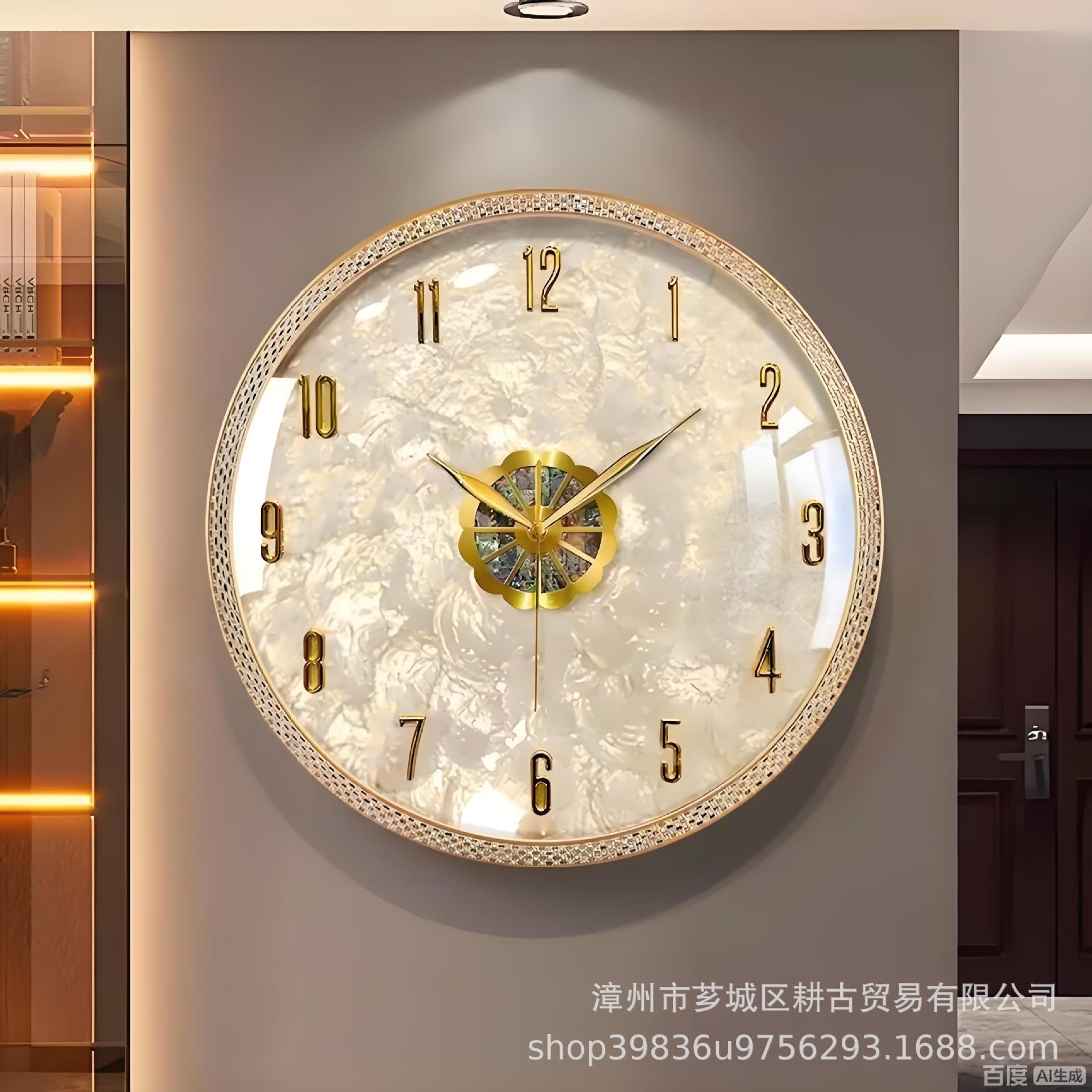 軽豪華真鍮時計掛け時計客間家庭用シンプル現代静音時計壁掛け時計豪華高級石英時計