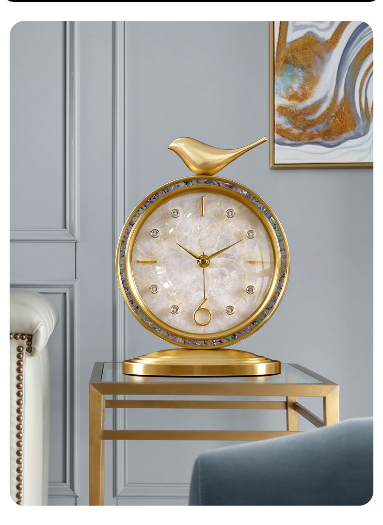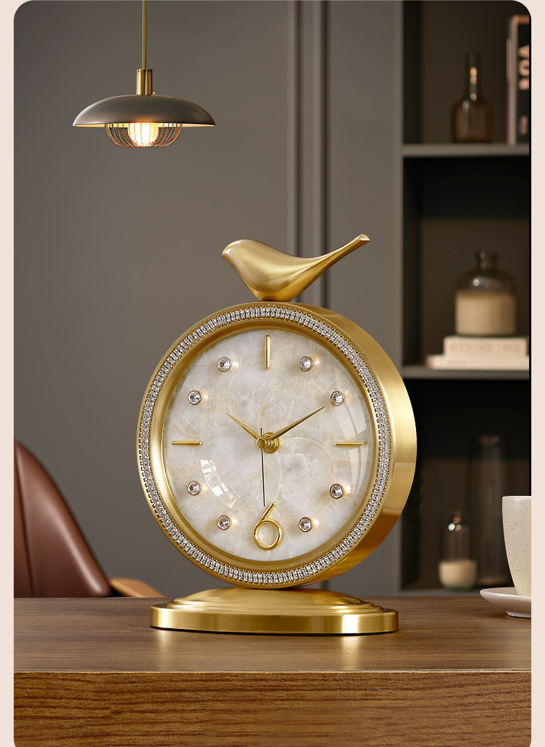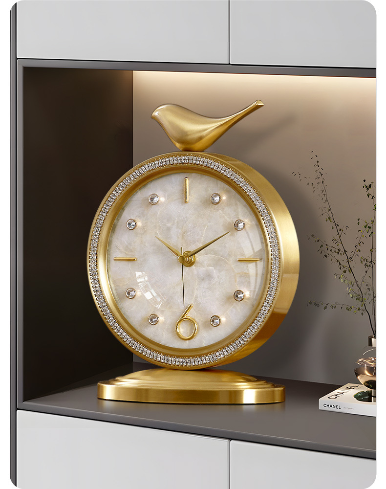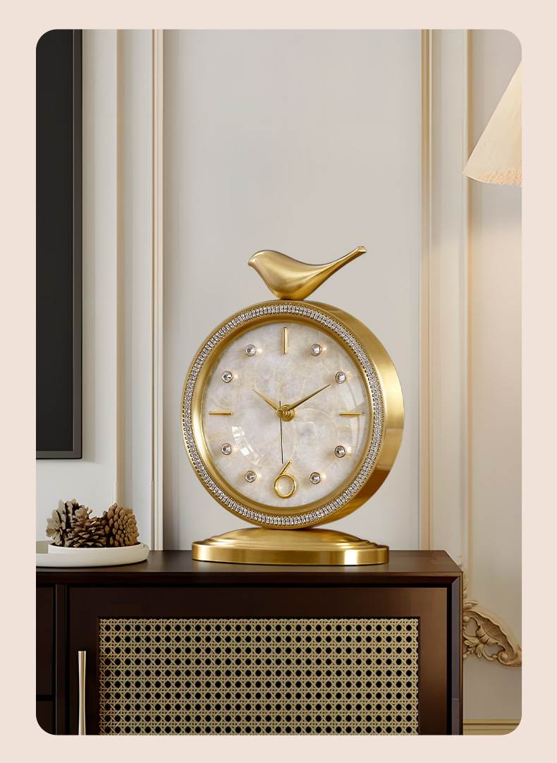 ヨーロピアンスタイルの卓上時計装飾品、軽くて豪華でファッショナブルな卓上時計、ホームリビングルームの真鍮時計卓上時計装飾品