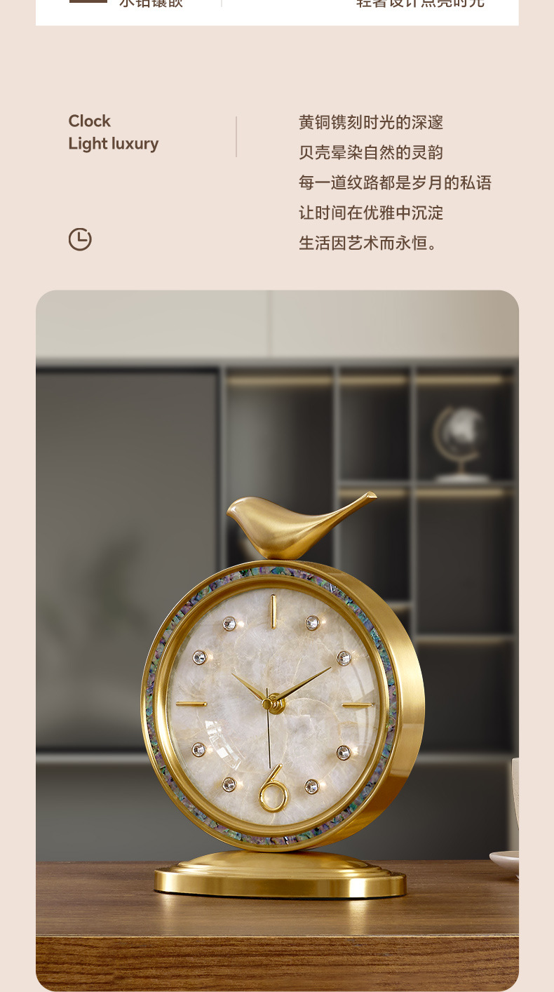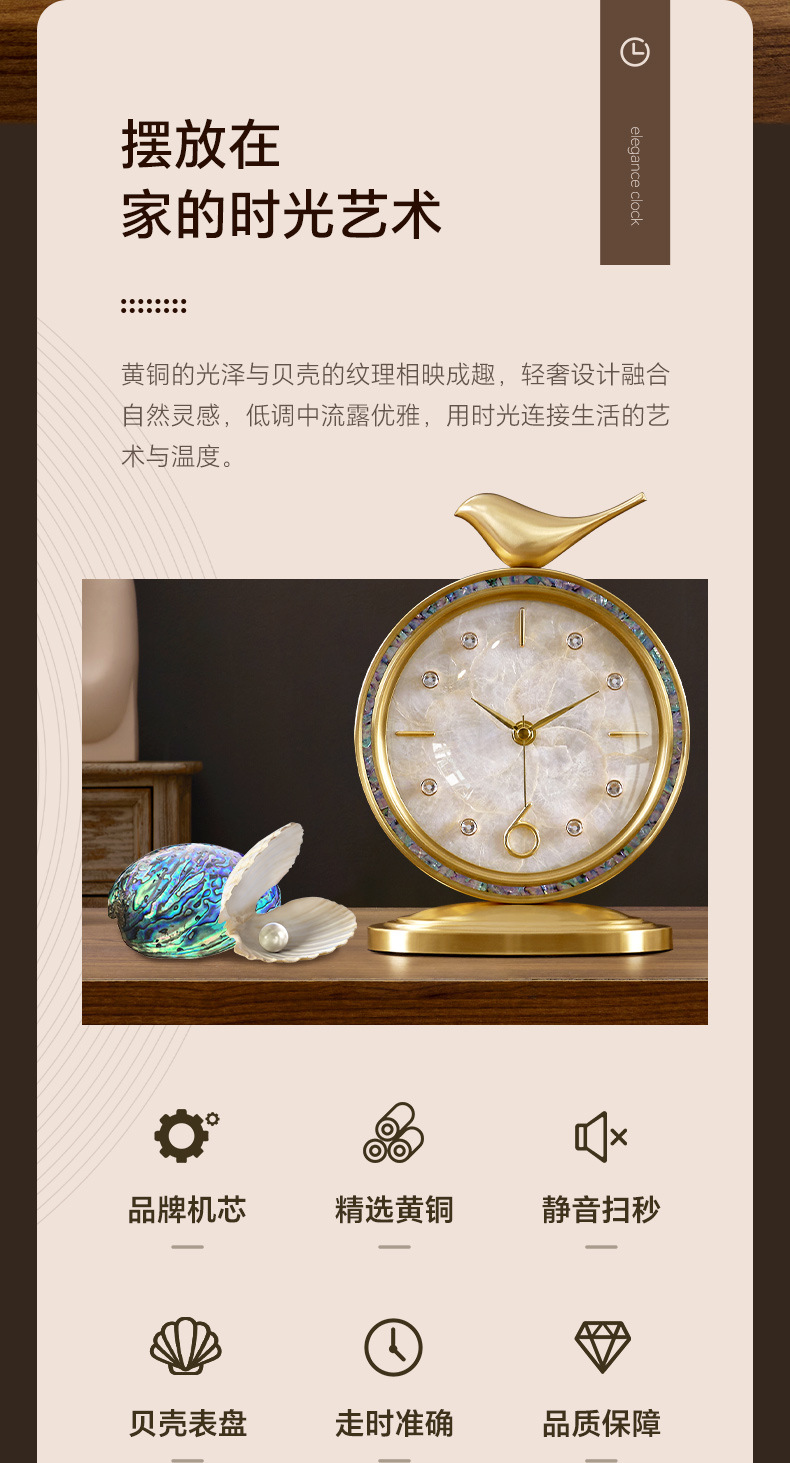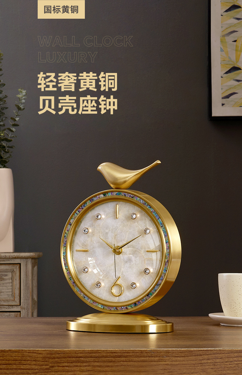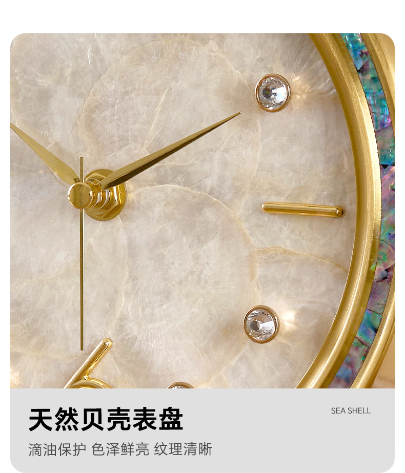 Douyin Xiaohongshu 人気のライト高級シェル時計真鍮時計装飾品リビングルーム時計雰囲気卓上時計デスクトップ振り子時計