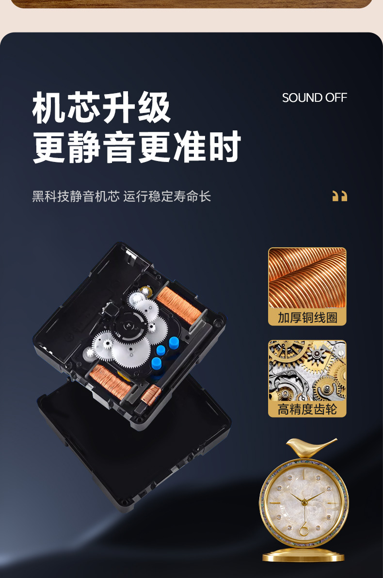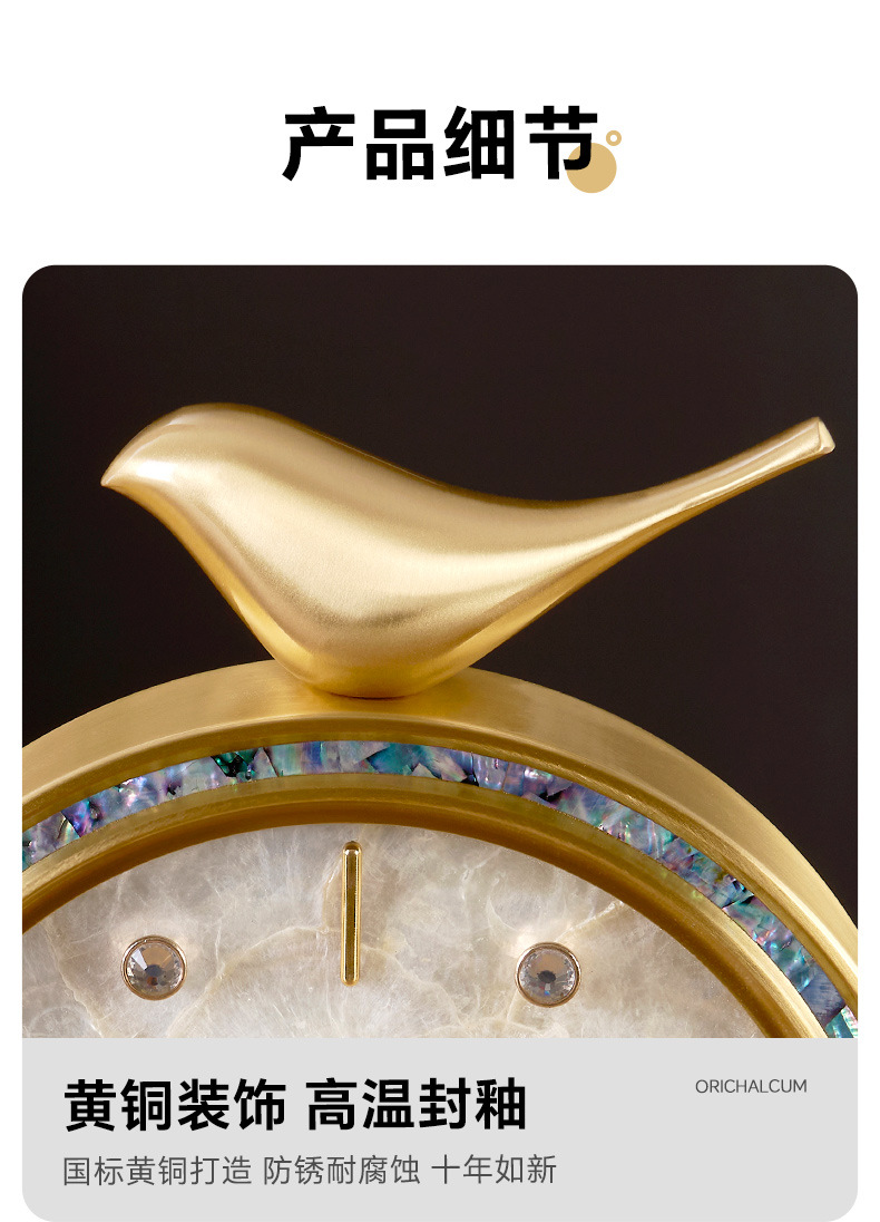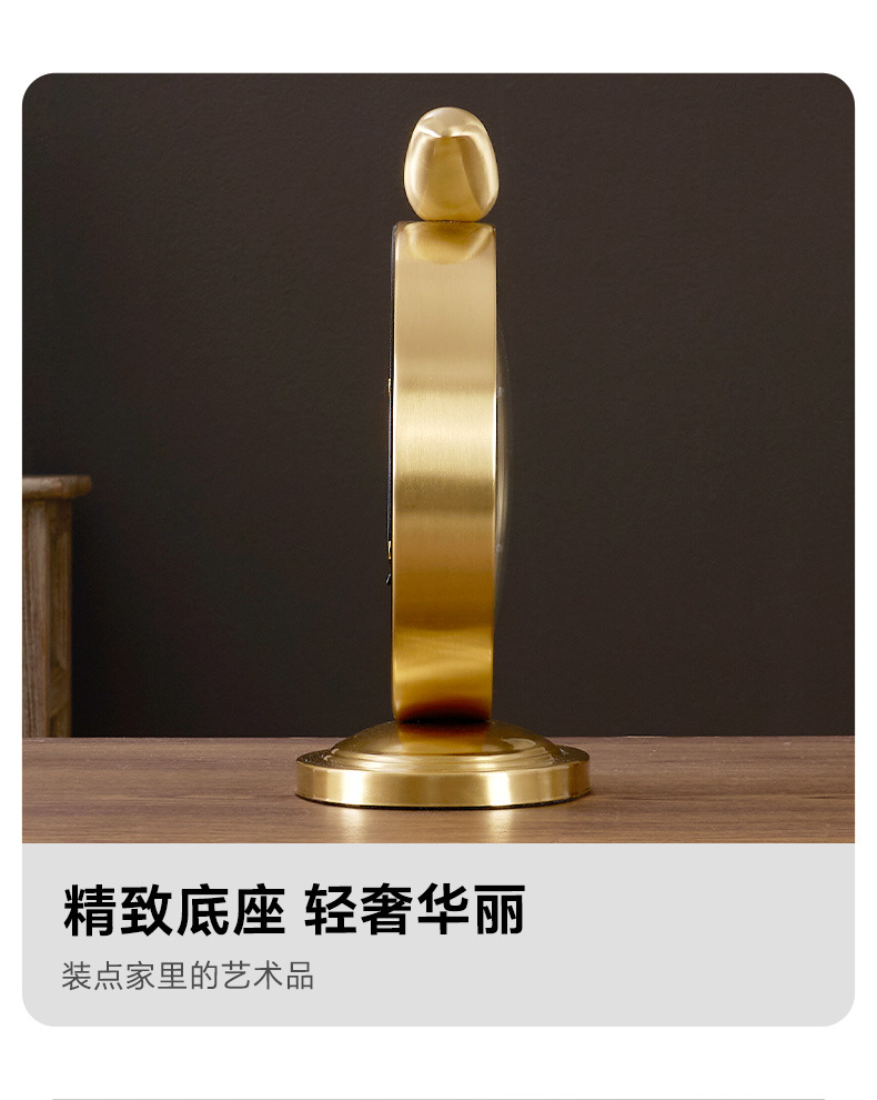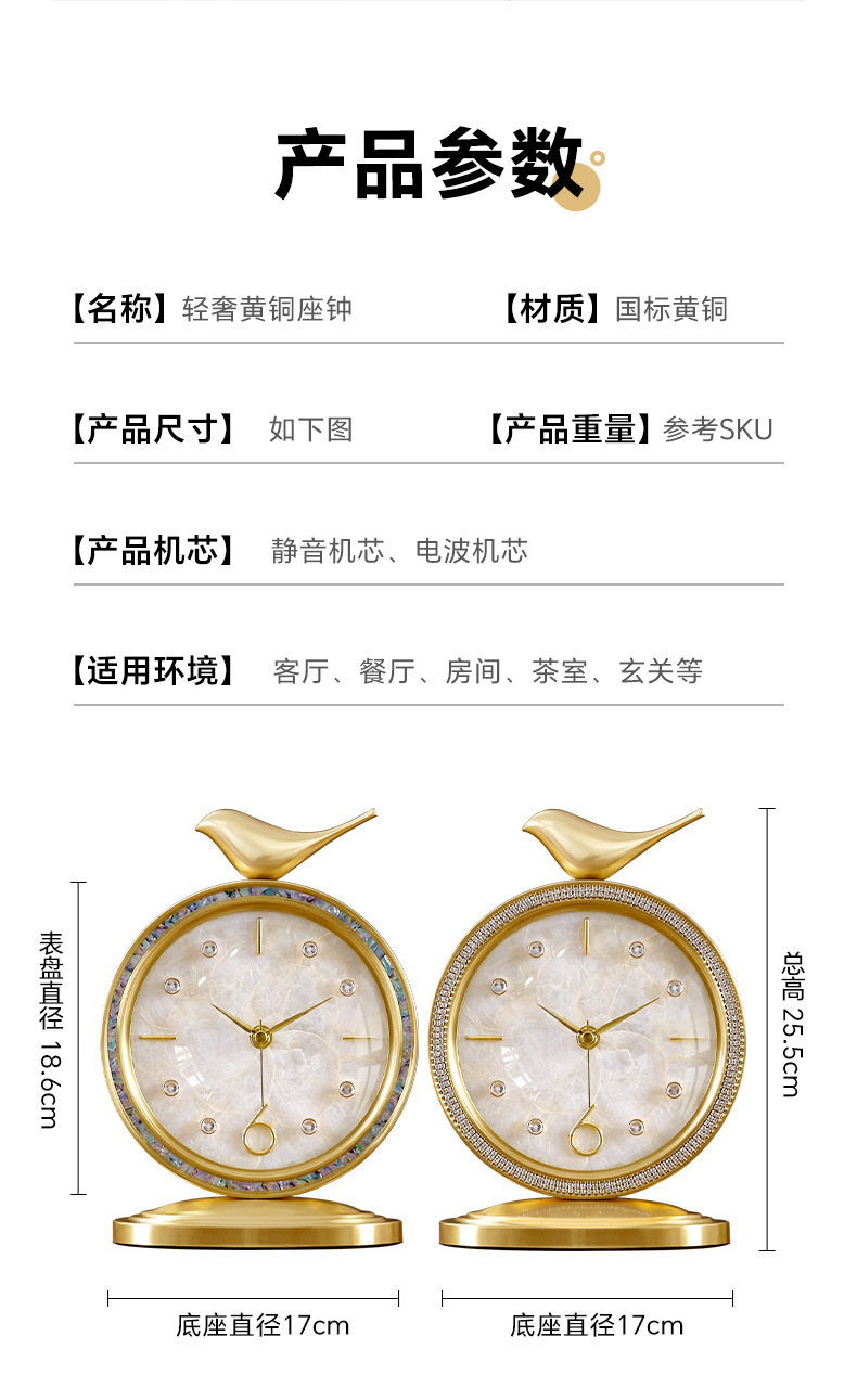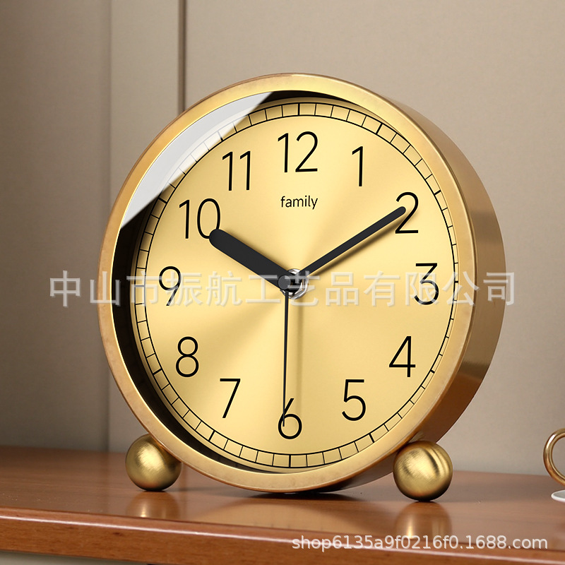 黄铜简约座钟家用台式坐钟静音桌面钟时尚台面床头石英电波表