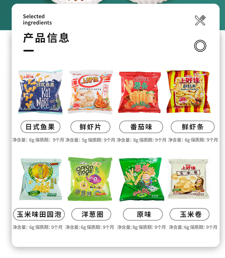 H Shanghaojia 新鮮なエビチップス、エビクラッカー、オニオンリング、ポテトチップス、子供の日のギフトスナック、学生寮のドラマスナック