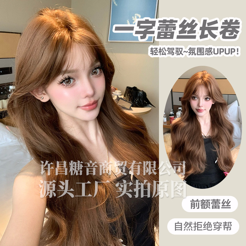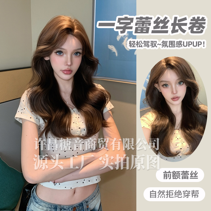 糖音假发女日常网红长卷发夏季新款自然逼真一字蕾丝全头套假发