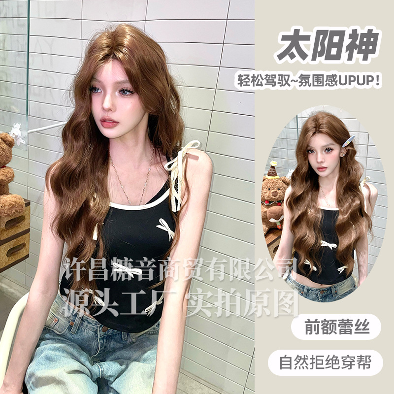 砂糖の音のかつらの女性の日常のネットの赤い長巻きの髪の夏の新型の自然で甘い全体のカバー式