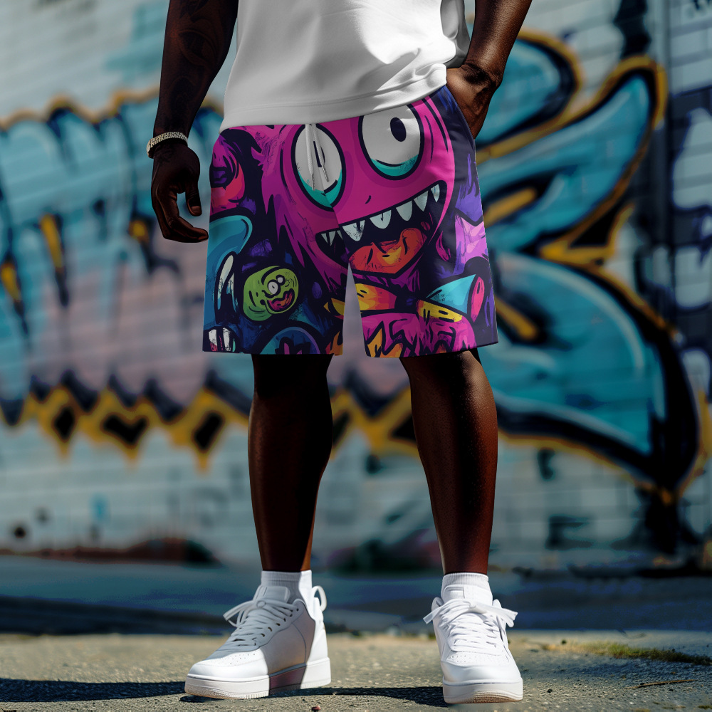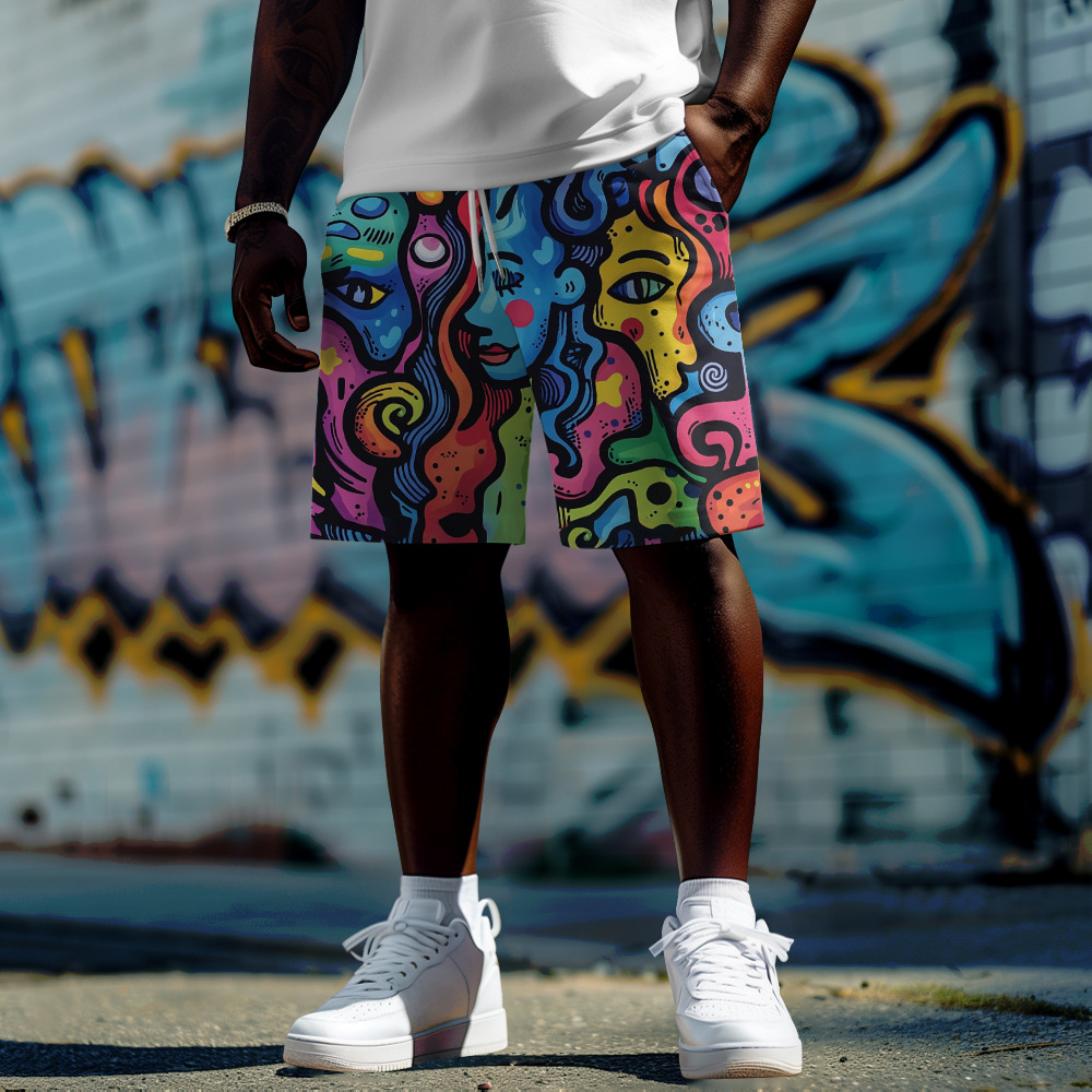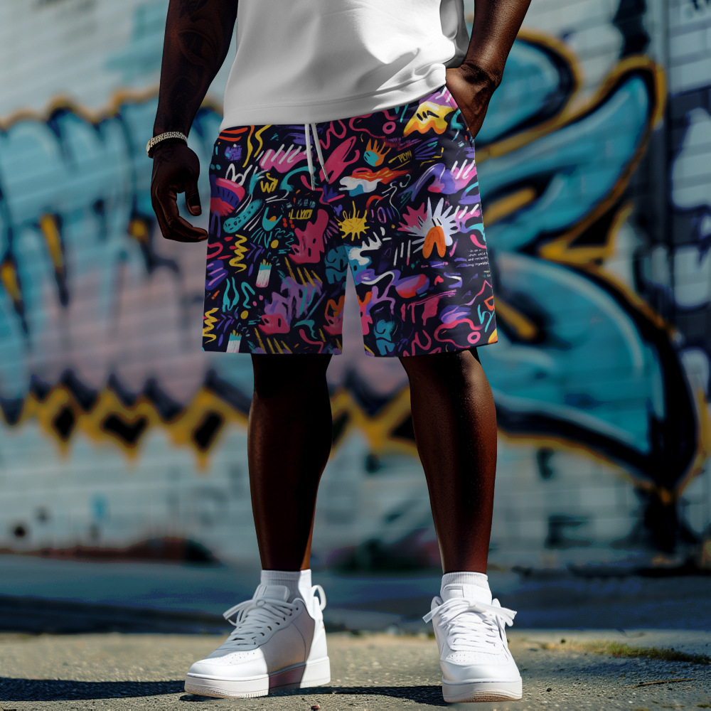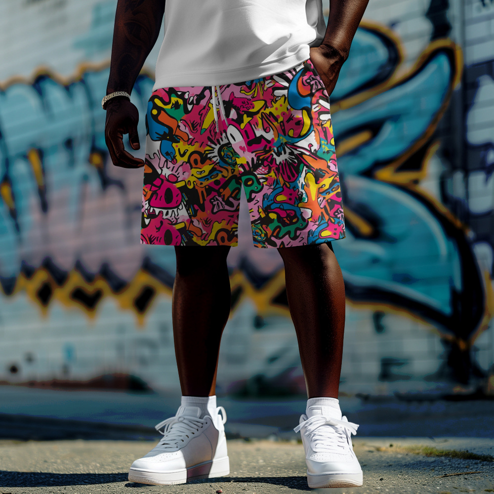 クロスボーダー新しい五芒星パターンプリント大きいサイズファットショーツ夏カジュアルルーズトレンディメンズショーツ