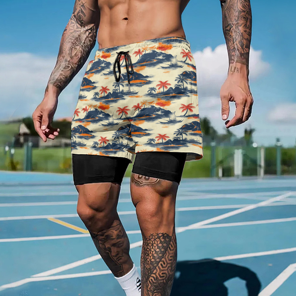 CP12004B32 クロスボーダーボーイズカジュアルスポーツビーチパンツ 3D デジタルプリント速乾性通気性偽ツーピースショーツ