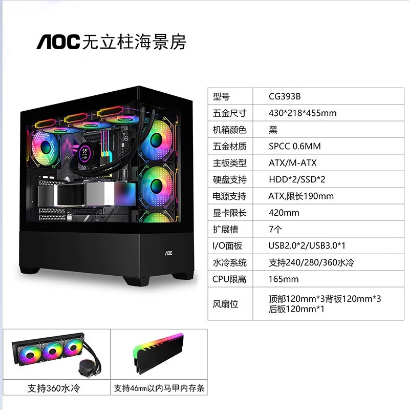 AOC CG393柱なし海景房パソコンケースデスクトップATX大板側透360水冷戦姫版