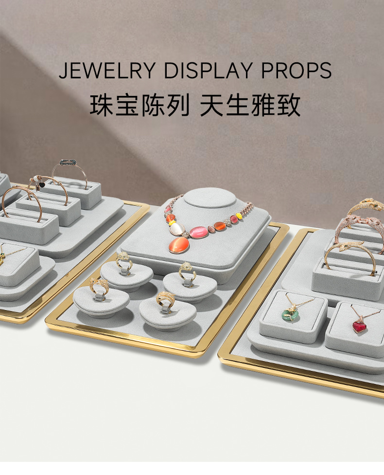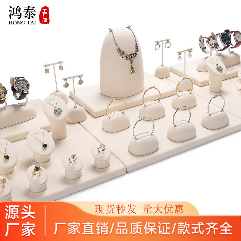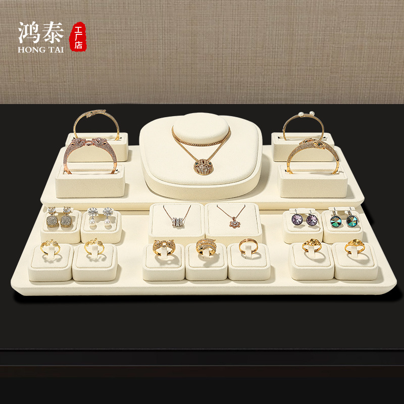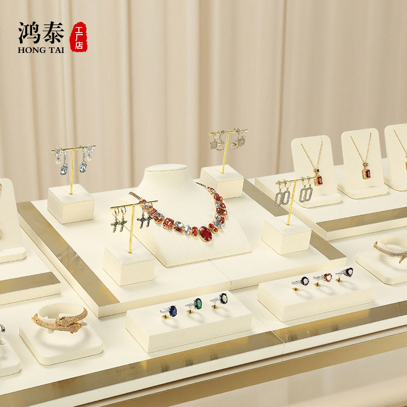 旭跃轻奢珠宝展示道具米色超纤项链展示架耳钉戒指手镯首饰挂架